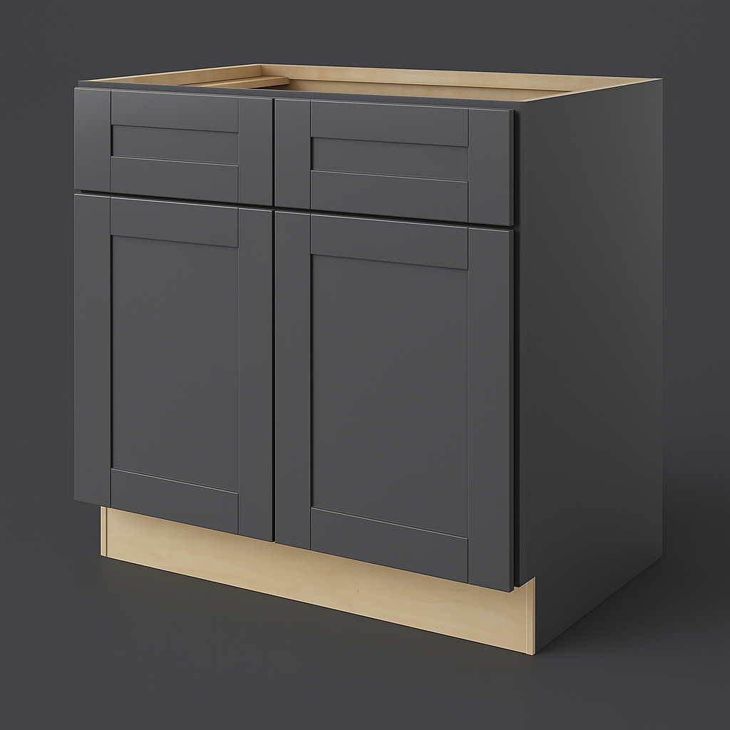 The Richmond Venetian Onyx Shaker Base Cabinet is a masterpiece of modern design, blending functionality with aesthetic appeal. Its deep gray finish and shaker-style doors create a sophisticated ambiance, perfect for contemporary kitchens. Pair it with light countertops for a striking contrast or integrate it into a monochromatic scheme for a seamless look. This cabinet is not just a storage solution; it's a statement piece that transforms your kitchen into a haven of style and practicality.