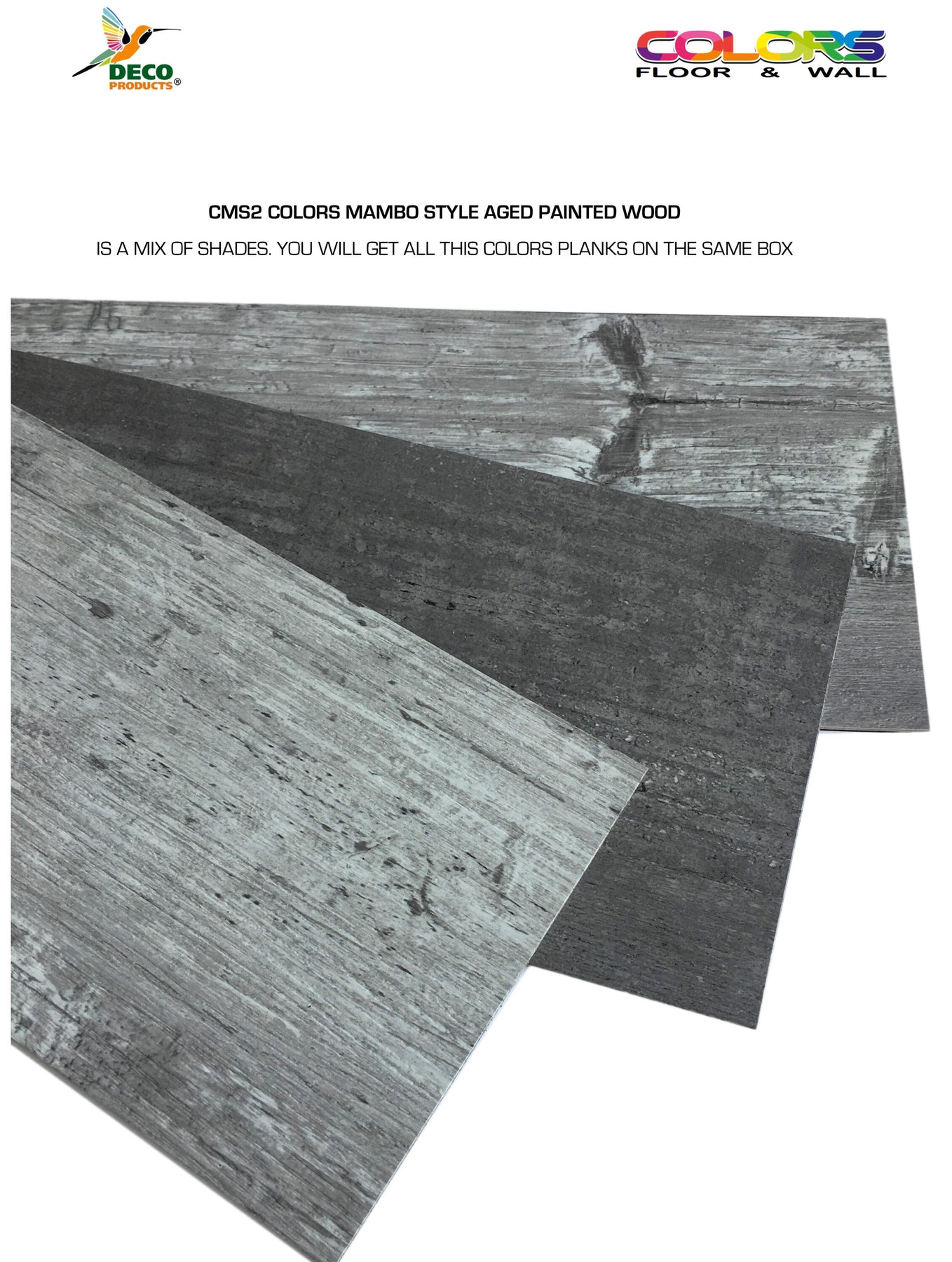 Get a 6 in x 6 in sample of Deco Products’ COLORS Mambo multi‑tonal luxury vinyl plank. This glue‑down, waterproof, embossed LVP showcases a high‑variation painted wood look with an 8‑mil wear layer for light‑traffic spaces.