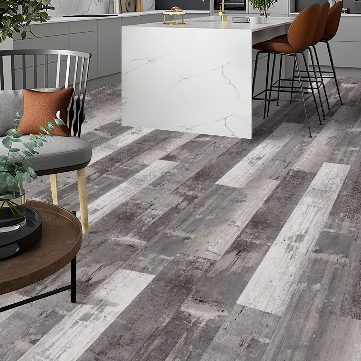 The Mambo palette dances between smoked grays and chalky whites, evoking reclaimed boards kissed by time. Its richly embossed texture brings an artisan patina that instantly adds depth to minimalist rooms. Pair it with crisp cabinetry and matte black accents, or run it up a feature wall for a gallery‑worthy moment. A chic foundation that makes luxe living effortless.
