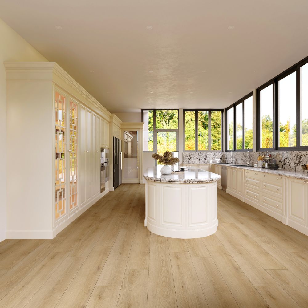 Pacific Shores brings a soft, sun-washed warmth that instantly freshens a room with effortless sophistication. The subtle grain and balanced tone feel refined yet relaxed, perfect for airy kitchens or serene living spaces. Pair it with creamy cabinetry and stone accents to heighten the coastal allure, or contrast with charcoal upholstery for modern edge. It’s a chic foundation that elevates everyday luxury.