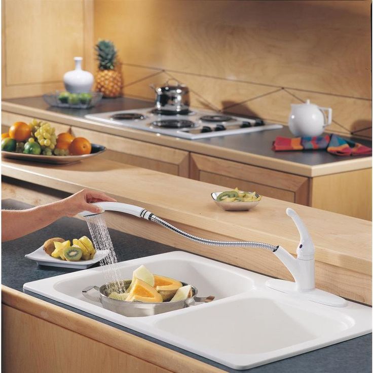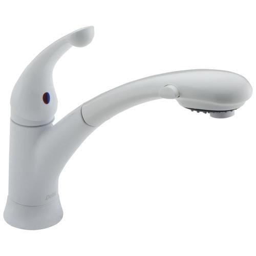 Delta Signature White 1-Handle Deck-Mount Pull-Out Handle Kitchen Faucet (Deck Plate Included)