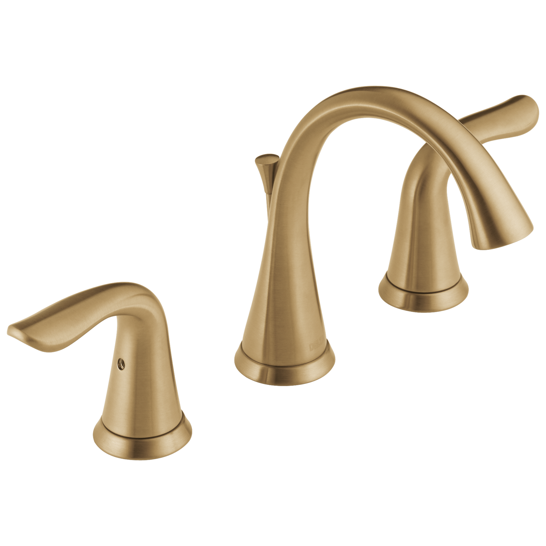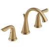 The Delta Lahara 2-handle widespread bathroom faucet features a graceful, transitional silhouette finished in Champagne Bronze. Built with DIAMOND Seal Technology and integrated InnoFlex PEX supply lines, it delivers long-lasting, leak‑free performance and includes a matching metal pop-up drain.