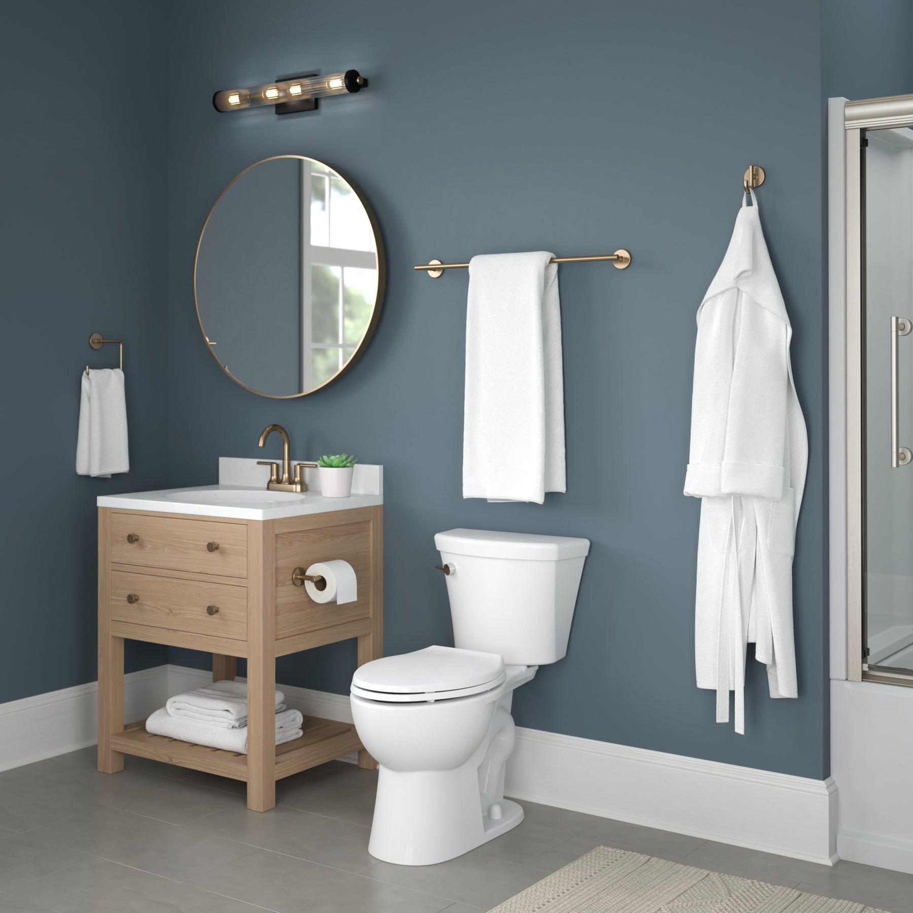 This Trinsic hook distills modern luxury into a graceful curve and slim silhouette, instantly elevating a bath with its soft champagne bronze glow. The brushed finish diffuses light beautifully, lending a refined, muted gold that pairs effortlessly with natural woods and cool paints. Style it in multiples for a curated spa feel—line them near a shower or vanity for robes and hand towels. It’s a small detail that brings a polished, lived-in elegance to everyday rituals.