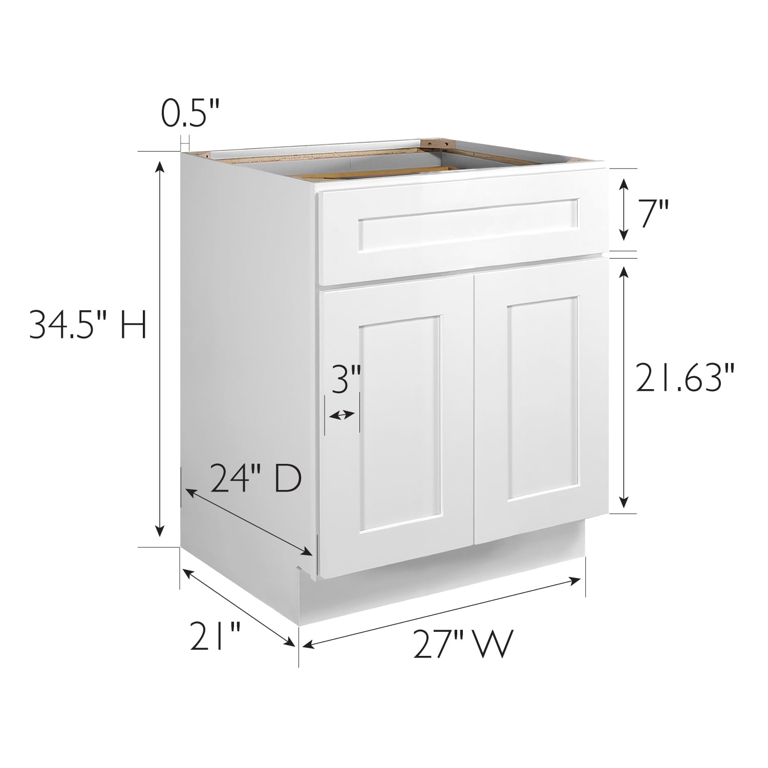Design House Brookings 27-in W x 34.5-in H x 24-in D White Maple 1-Drawer Base Ready To Assemble Plywood Cabinet (Recessed Panel Shaker Style)