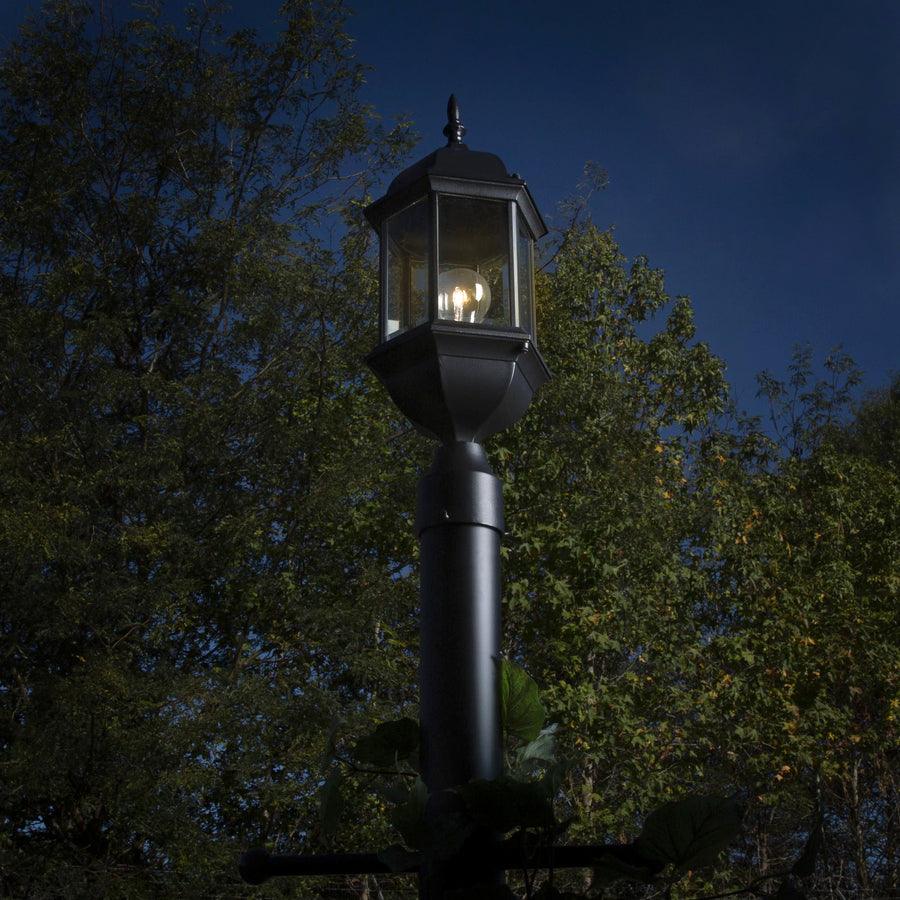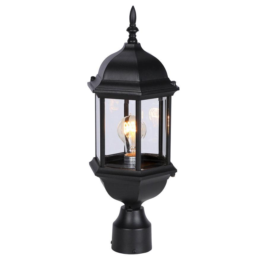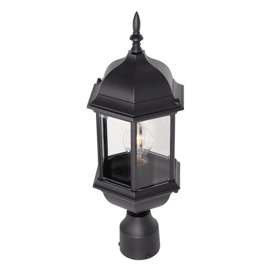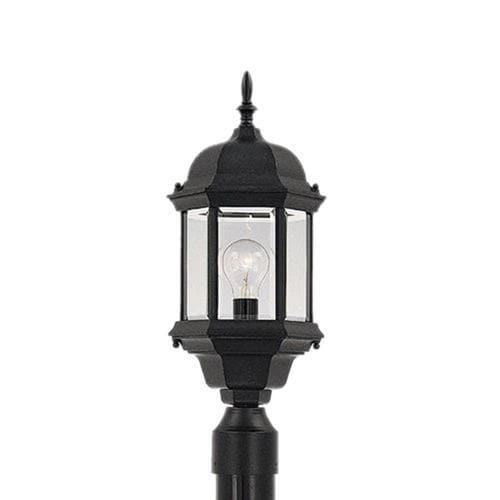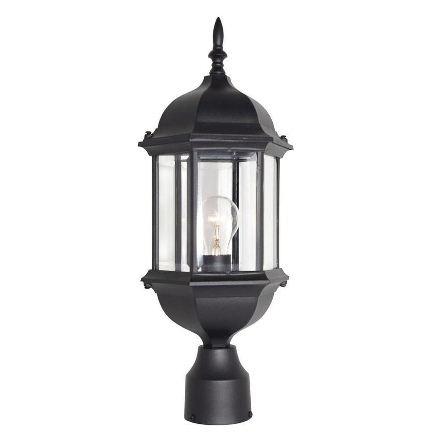 Cast aluminum 6 sided post lantern with clear beveled glass panels Fits 3-in post (not included)