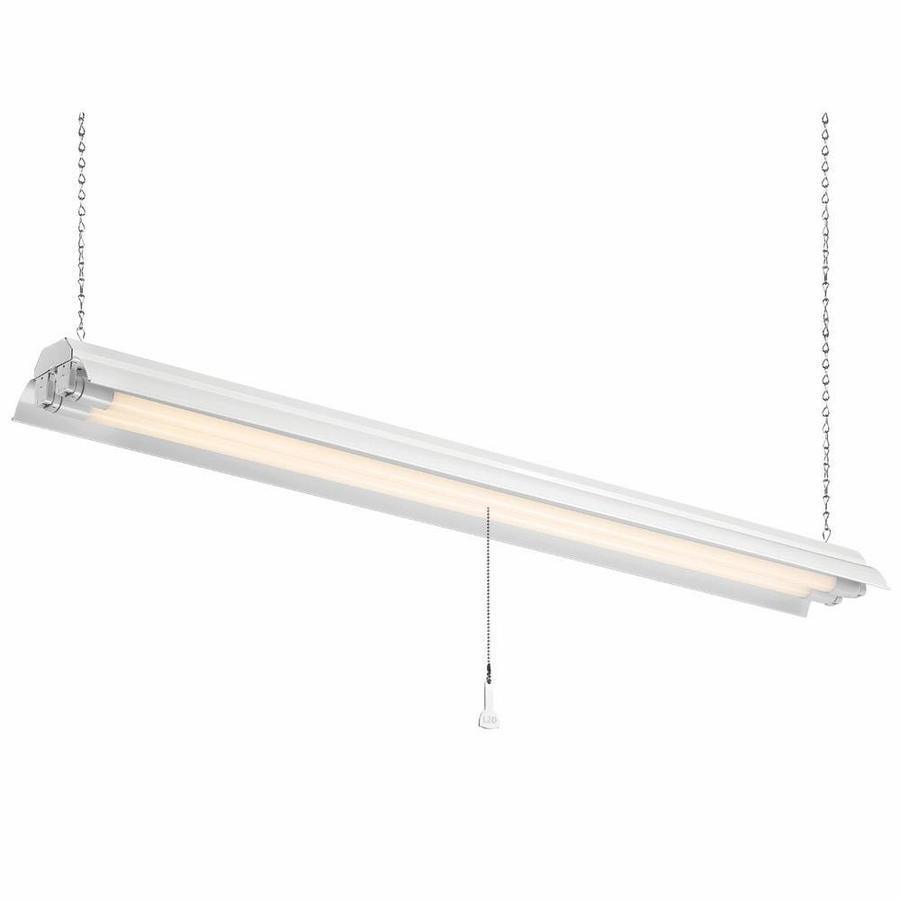 T8 LED tube shop lights are the perfect solution for garages, utility and work areas requiring additional task lighting Sturdy construction with protective white enamel finish 2 T8 DLC listed LED tubes (included) uses 28-Watt, produces 5000K daylight at 3,600 Lumens UL listed, suitable for damp locations
