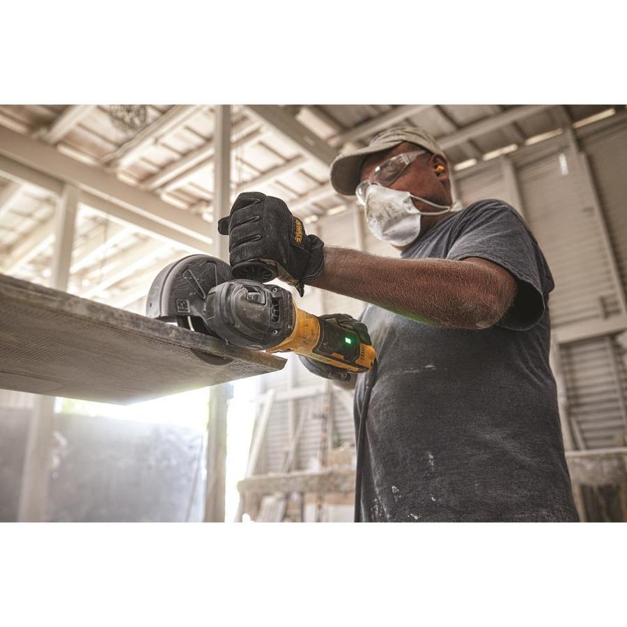 Brushless motor requires no brush changes The electronic Kickback Brake engages when a pinch, stall, or bind-up event is sensed, engaging with maximum force to quickly stop the wheel, reduce the movement of the grinder, and shut the motor off Power-loss reset™ - the on/off trigger switch has a no-volt release function in the event of a power outage or other unexpected shut down, the trigger switch will need to be cycled (turned off and then on) to restart tool Variable speed functionality lets the user adjust wheel speed for applications as needed