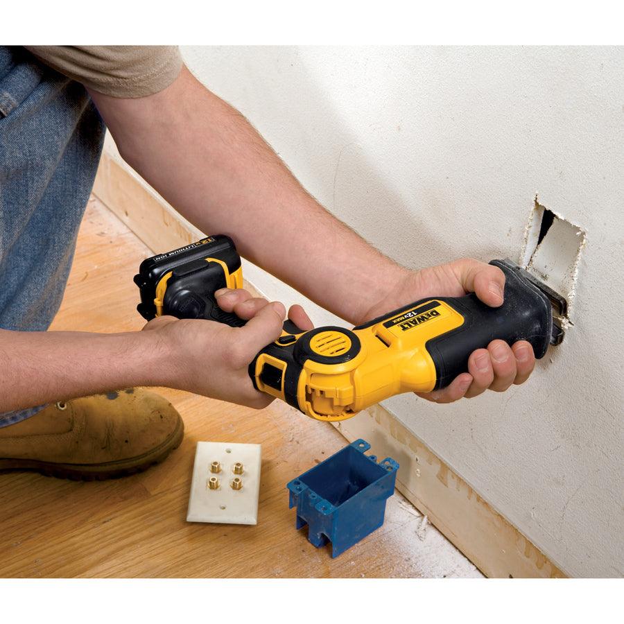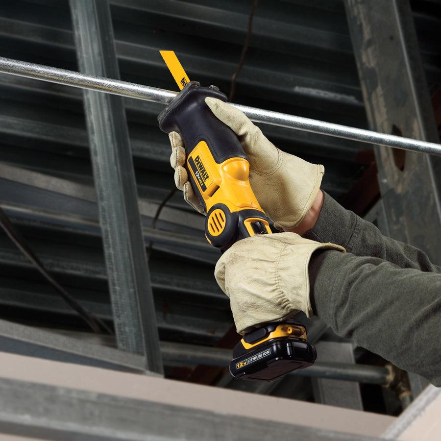 12 V MAX 3/8-in drill/driver features 2 speed transmission (0-400/0-1,500) DCS310 12 V MAX pivot recip saw utilizes 3-position pivot handle for making difficult cuts in confined spaces Manufactured by DEWALT 3 year limited warranty/1 year free service contract/90 day money back guarantee All tools covered by a 3-year limited warranty Batteries come with a 3-year limited warranty Maximum initial battery voltage (measured without a work load) is 12-volts; nominal voltage is 10.8-volts Kit includes: 3/8 inch drill/driver, pivot recip saw, two 12V MAX Li-Ion batteries, fast charger and kit bag Accessories include: 4-in 6 TPI wood cutting recip blade and 4-in 18 TPI metal cutting recip blade