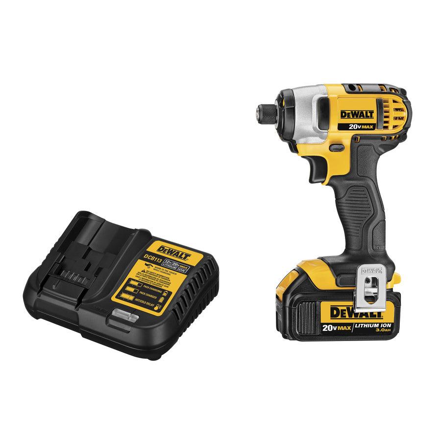 Includes DCF885 20-volt MAX 1/4-in impact driver, one 20-volt MAX lithium ion 3.0 Ah battery, a charger, a belt hook and a kit box