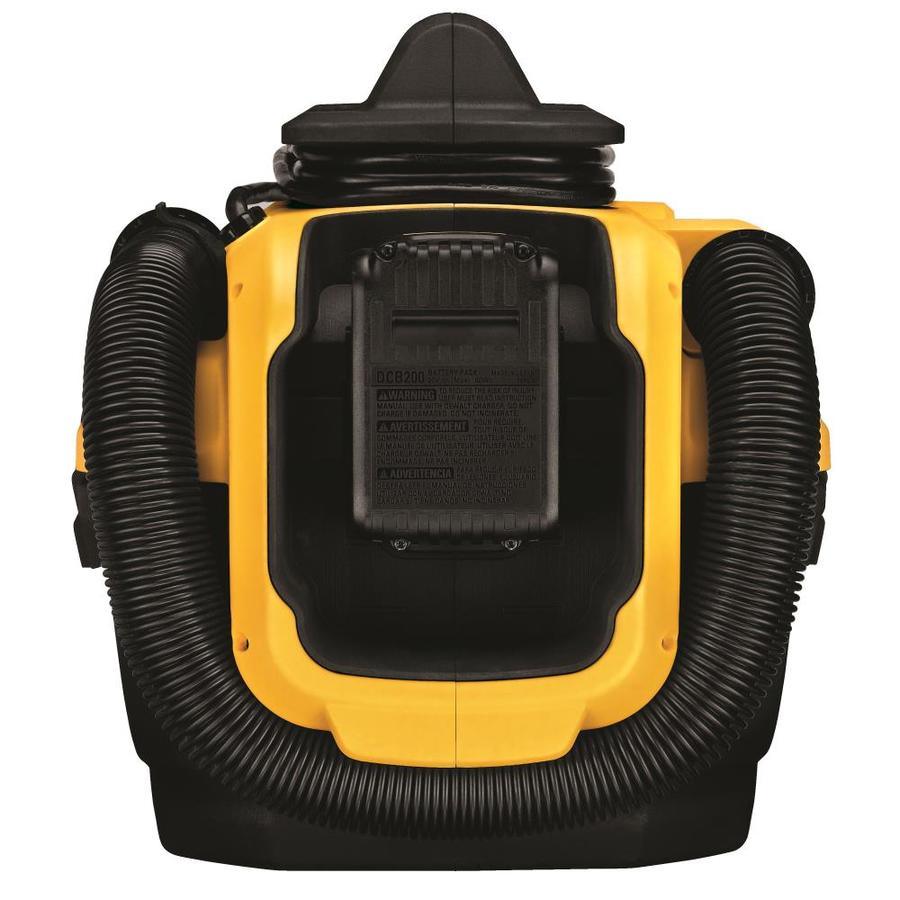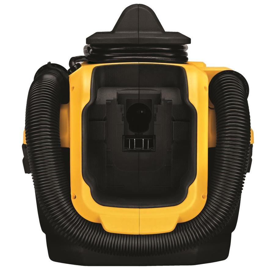2-gal cordless wet/dry shop vacuum produces 52-in of water lift and 140-CFM of powerful suction, perfect for emptying a toilet or a clogged pipe HEPA-rated reusable wet/dry filter traps dust with 99.97% efficiency and can be easily cleaned by tapping or rinsing with water Cordless or corded operation allows it to be powered by an 20-volt MAX battery or plugged into an AC outlet for added versatility (battery and charger sold separately) 1-1/4-in diameter 5-ft hose is crush-resistant, providing durability, flexibility and ease of use Built-in storage allows you to organize a variety of cleaning accessories, including crevice and wide nozzle tool attachments Blower port allows you to reverse airflow so you can clear fine dirt and debris from small spaces or blow grass clippings or leaves from a patio Transport handle and lightweight 11.06-lb plastic canister make carrying the vacuum easy 3-year limited warranty protects your investment and gives you peace of mind