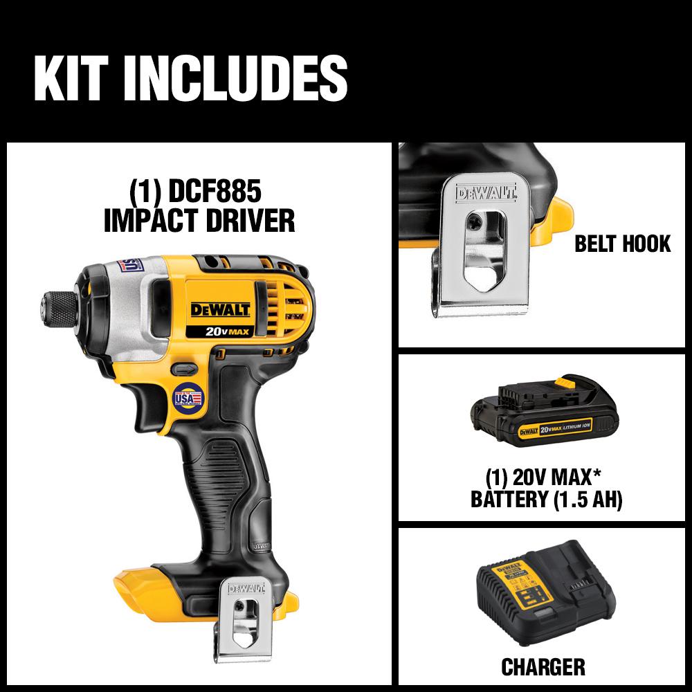 • Includes impact driver, 20-Volt battery, 30 minute charger, and carrying case