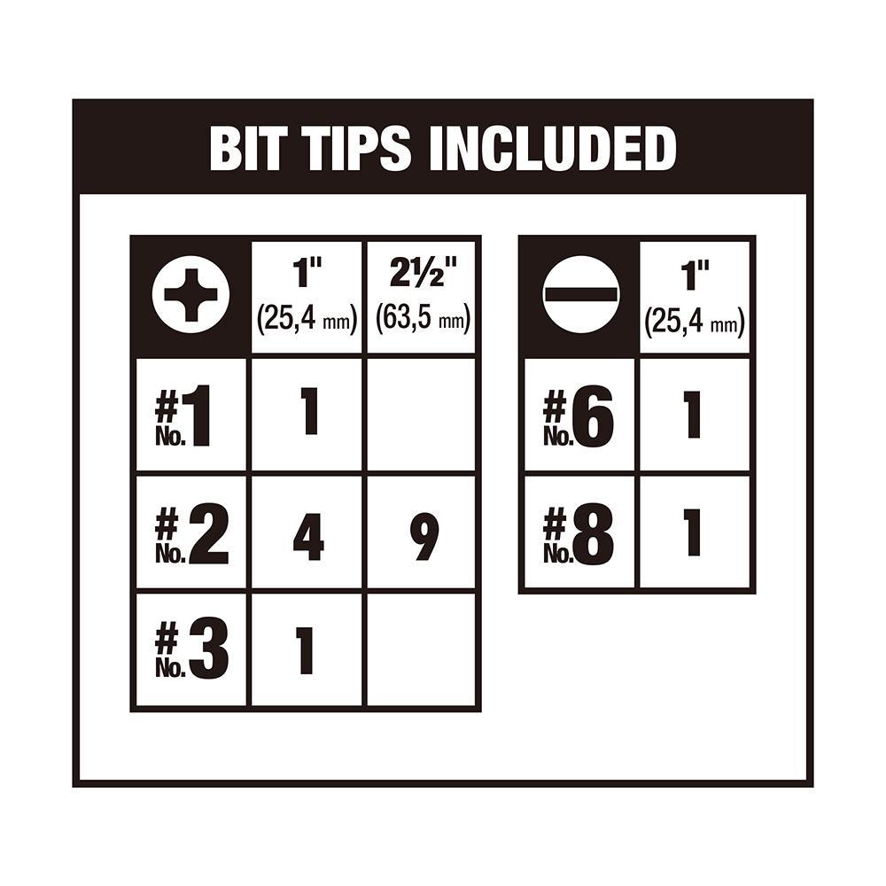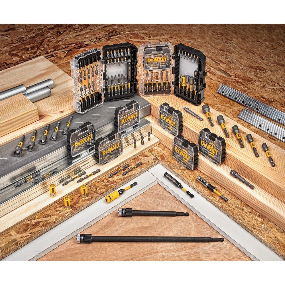 DEWALT MAX IMPACT screw driving bits are engineered to last longer than standard bits. The Dual Torsion Zone transfers optimal torque for Impact Driver use, while the Optimized tip geometry provides maximum fit, helping to reduce wear, stripping and cam-out. 2.5 in. bits and longer are compatible with the 10X Magnetic Bit Sleeve, providing users with precise placement and screw retention. Insert (1 in. bits) achieve optimized fastener magnetism with the DEWALT MAX IMPACT Bit Tip Holder.