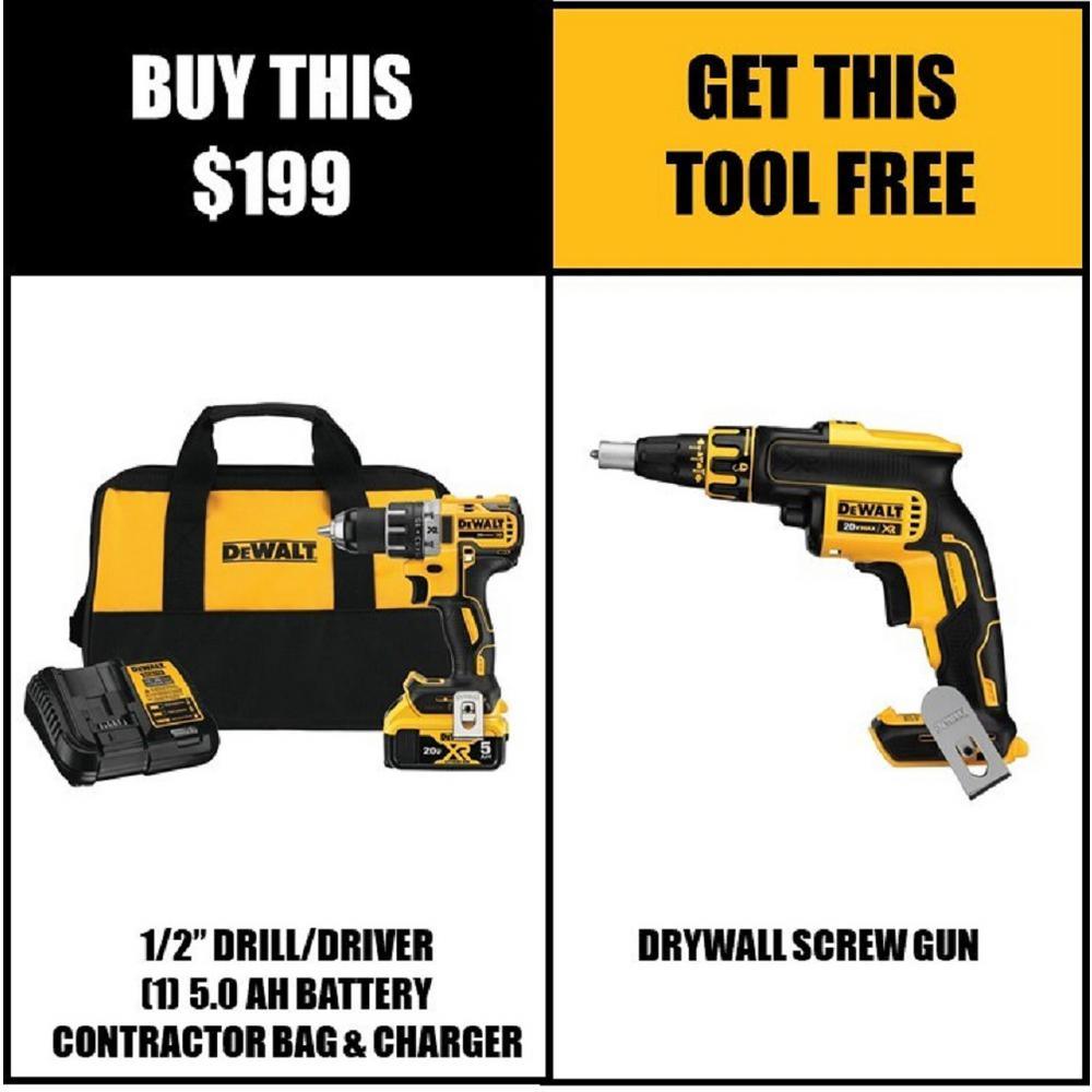 20V MAX XR Brushless 1/2" Drill/Driver Kit + Free Drywall Screw Gun