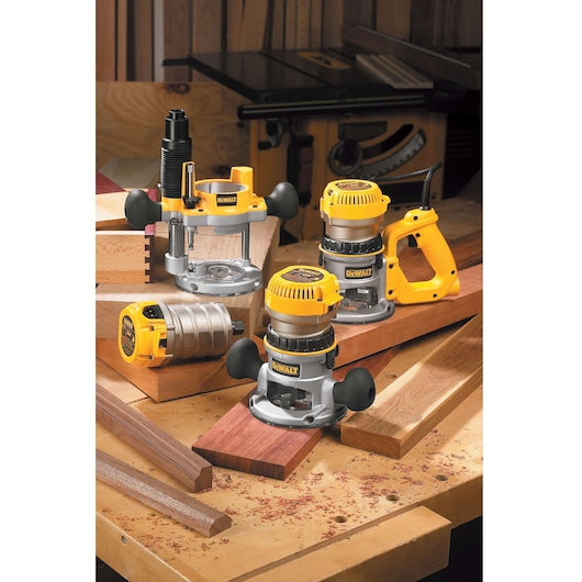 Power through hardwoods with a 12-amp, 2-1/4 HP electronic variable-speed motor in a durable fixed-base router. Soft-start, precise depth adjustments, and a die-cast aluminum base deliver smooth, controlled cuts for cabinetry, joinery, and edge profiling.