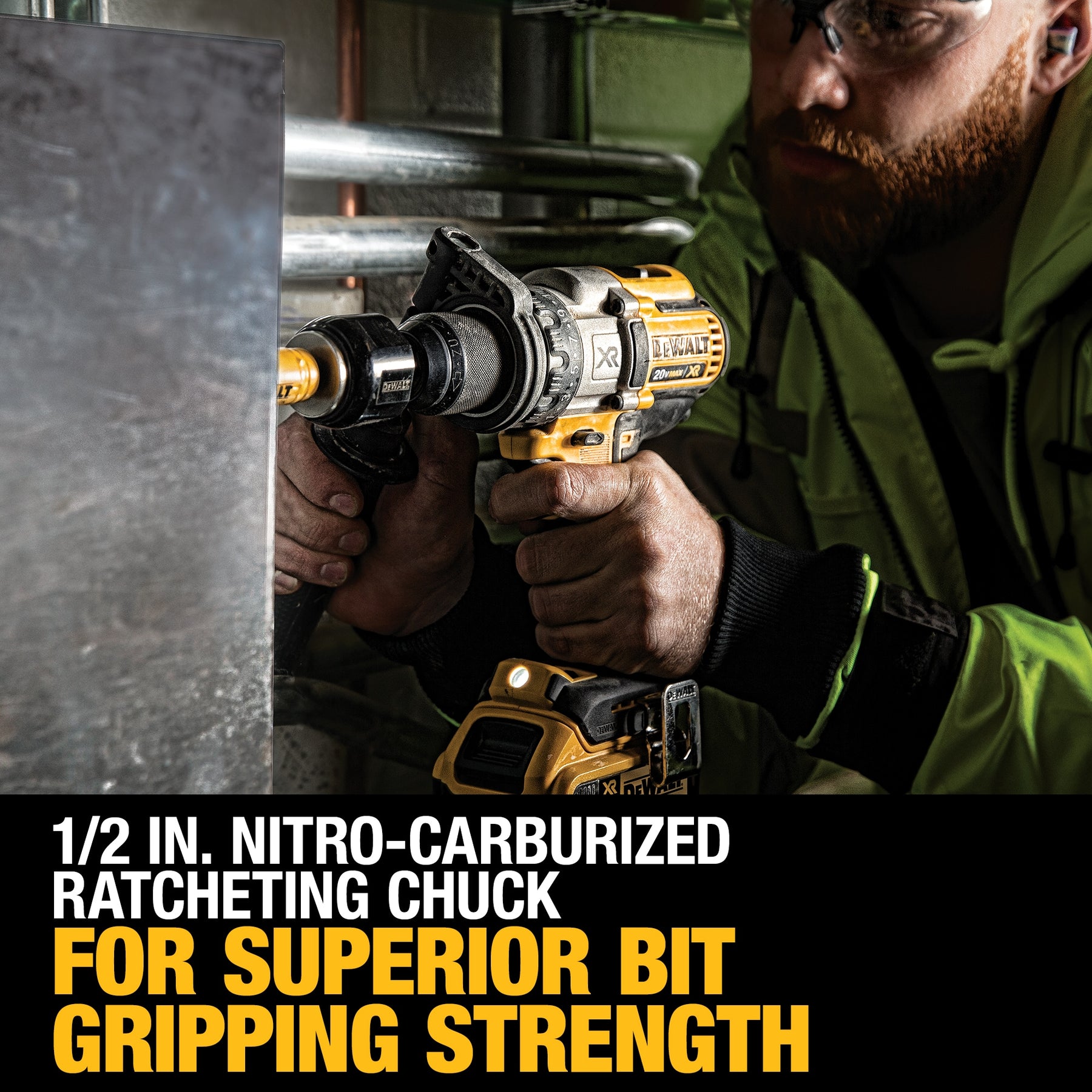 • Heavy-Duty 1/2-in Ratcheting Chuck: Nitro-carburized metal with carbide inserts for superior bit gripping strength