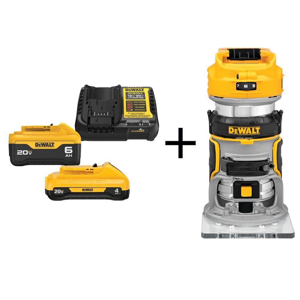 DEWALT 20V MAX XR Starter Kit with 6.0Ah & 4.0Ah Batteries and FREE 20V Cordless Brushless Compact Router