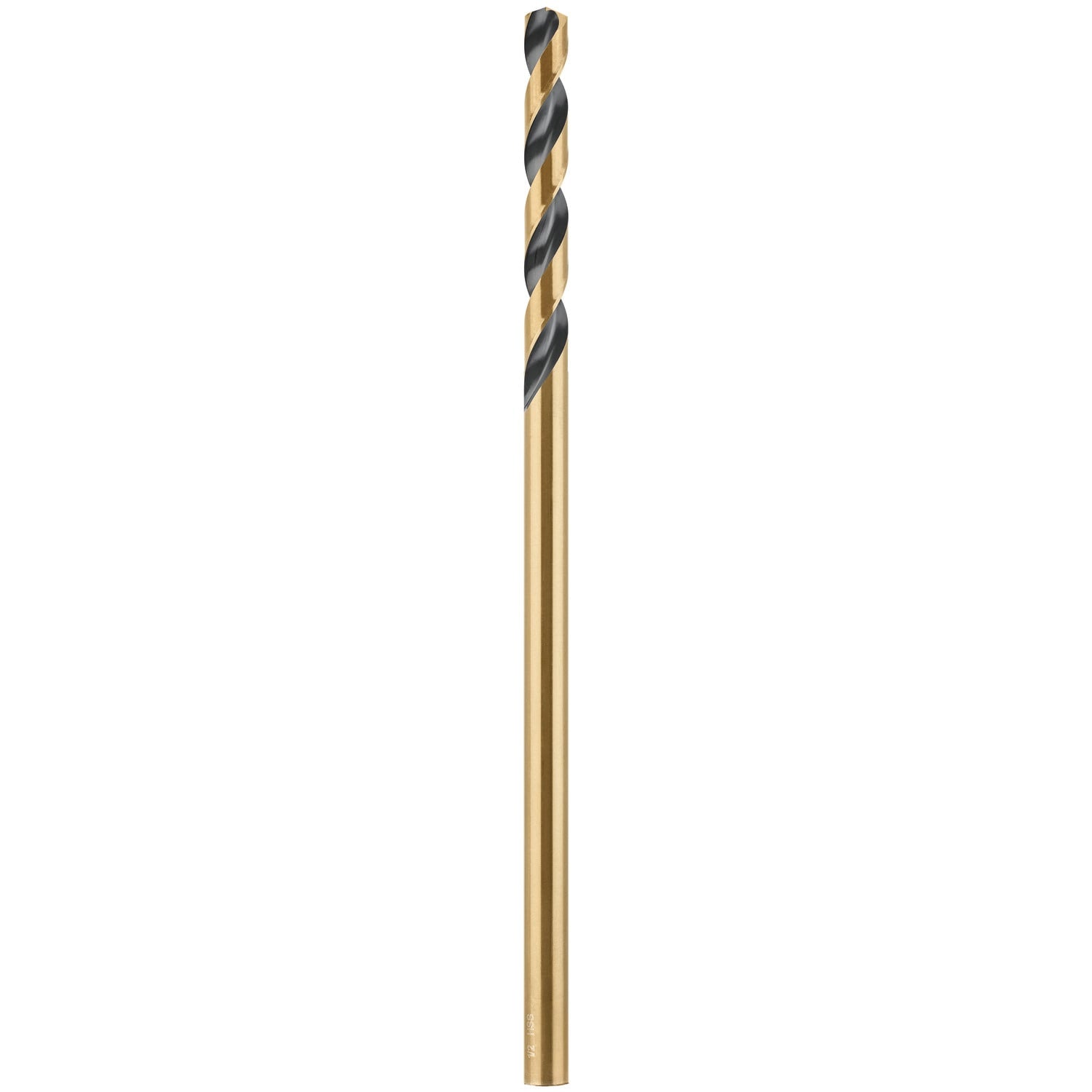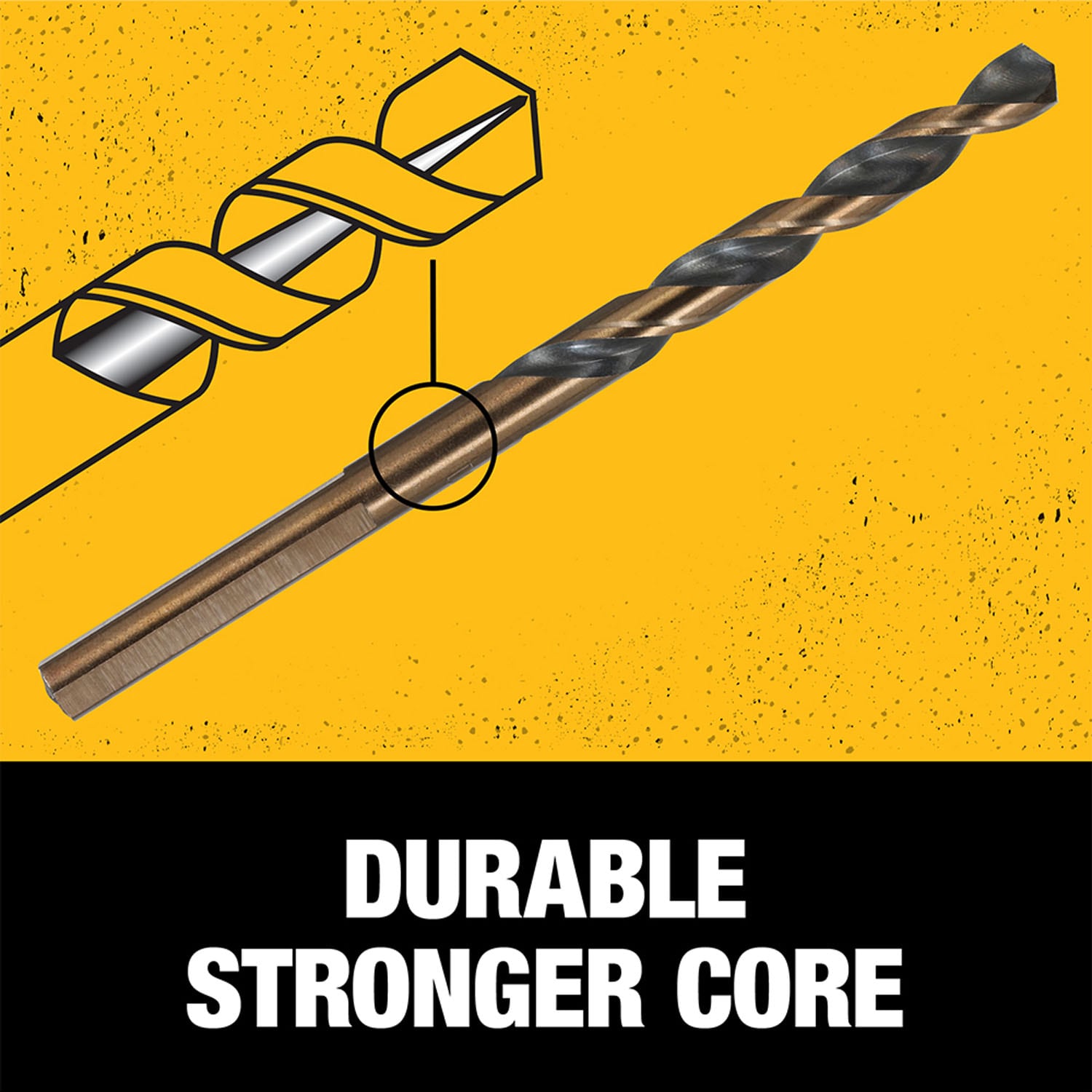 This DEWALT aircraft-length twist drill bit features a durable black & gold coated high-speed steel construction for long life. A 135° split point starts on contact to reduce walking, while the parabolic flute helps clear chips for smoother drilling in metal, wood, fiberglass, PVC, and more.