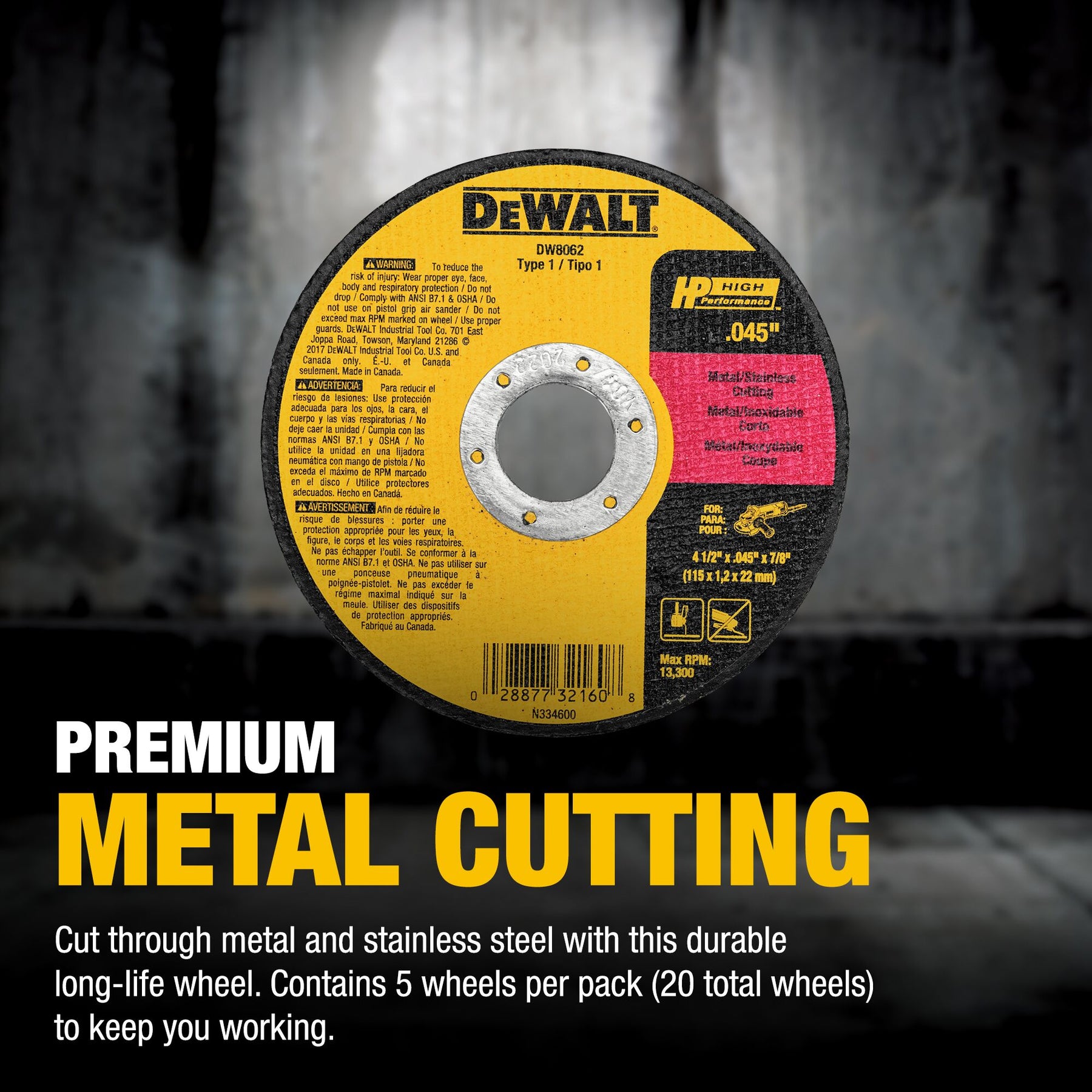 Choose this DEWALT 4.5-in cutting wheel for faster, cleaner metal cuts and longer-lasting performance.