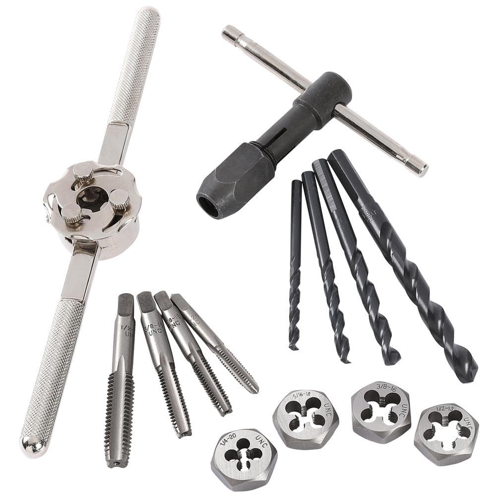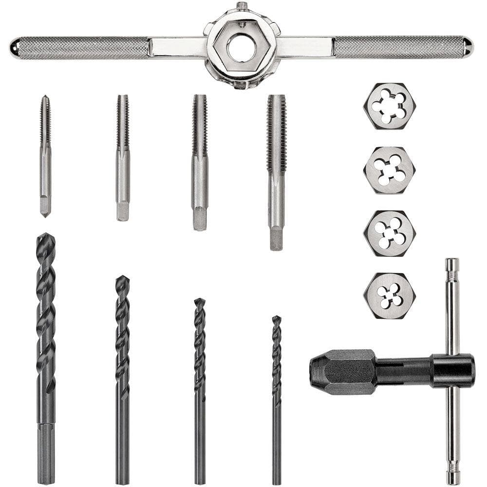 - Complete Set: Includes taps, dies, matching drill bits, and both tap and die handles