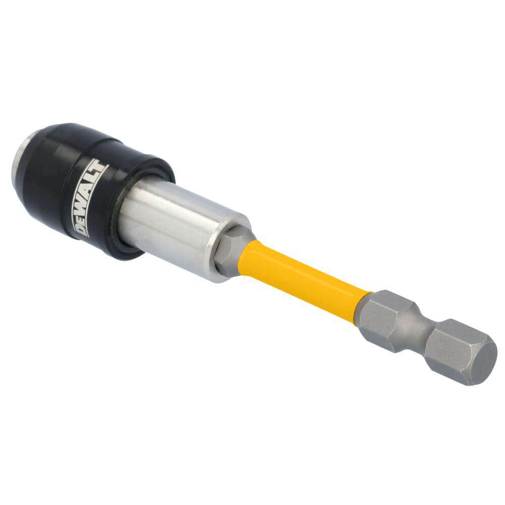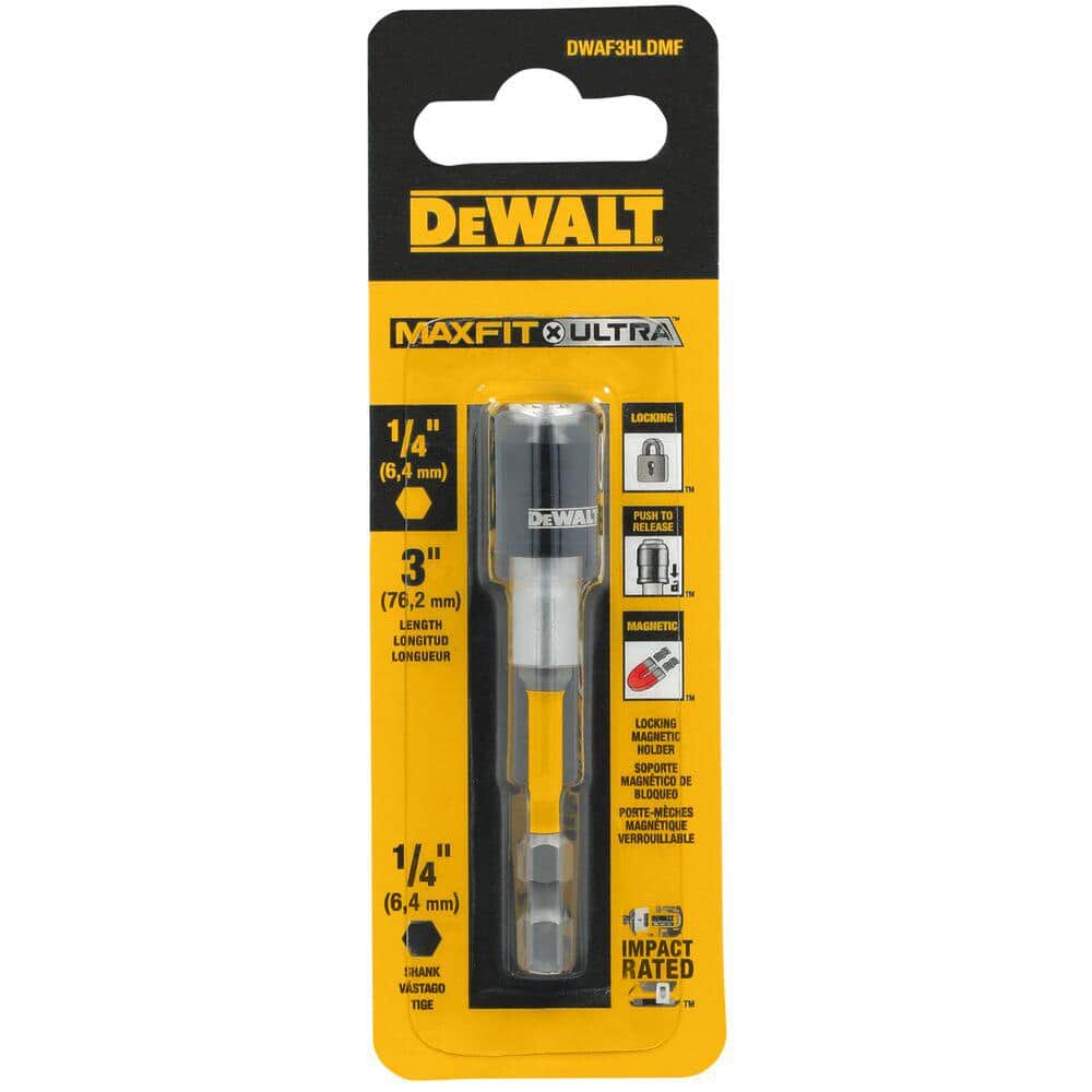 The DEWALT MAXFIT 3 in. Steel Bit Holder delivers secure, wobble-free fastening with a locking magnetic design. Its 1/4 in. hex shank and impact-rated torsion zone provide reliable performance with drills and impact drivers.