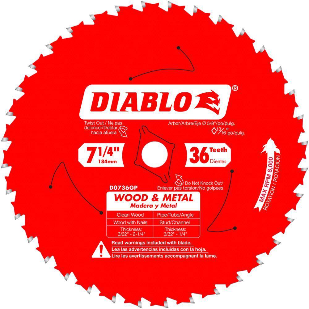 The advanced laser-cut slim kerf on the Diablo 7-1/4 in. x 40-Tooth Finishing Saw Blade creates a thin swath for less material removal and fast, effortless operation. Constructed with TiCo Hi-Density special-blend carbide, this durable circular saw blade is outfitted with 40 teeth to make smooth, finely finished cuts in wood and plywood. The Perma-SHIELD nonstick coating reduces drag while stabilizer vents absorb noise and vibration to keep the blade straight.