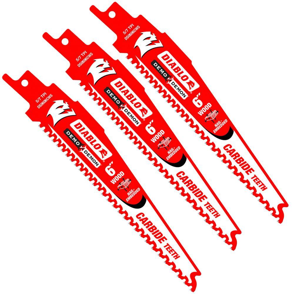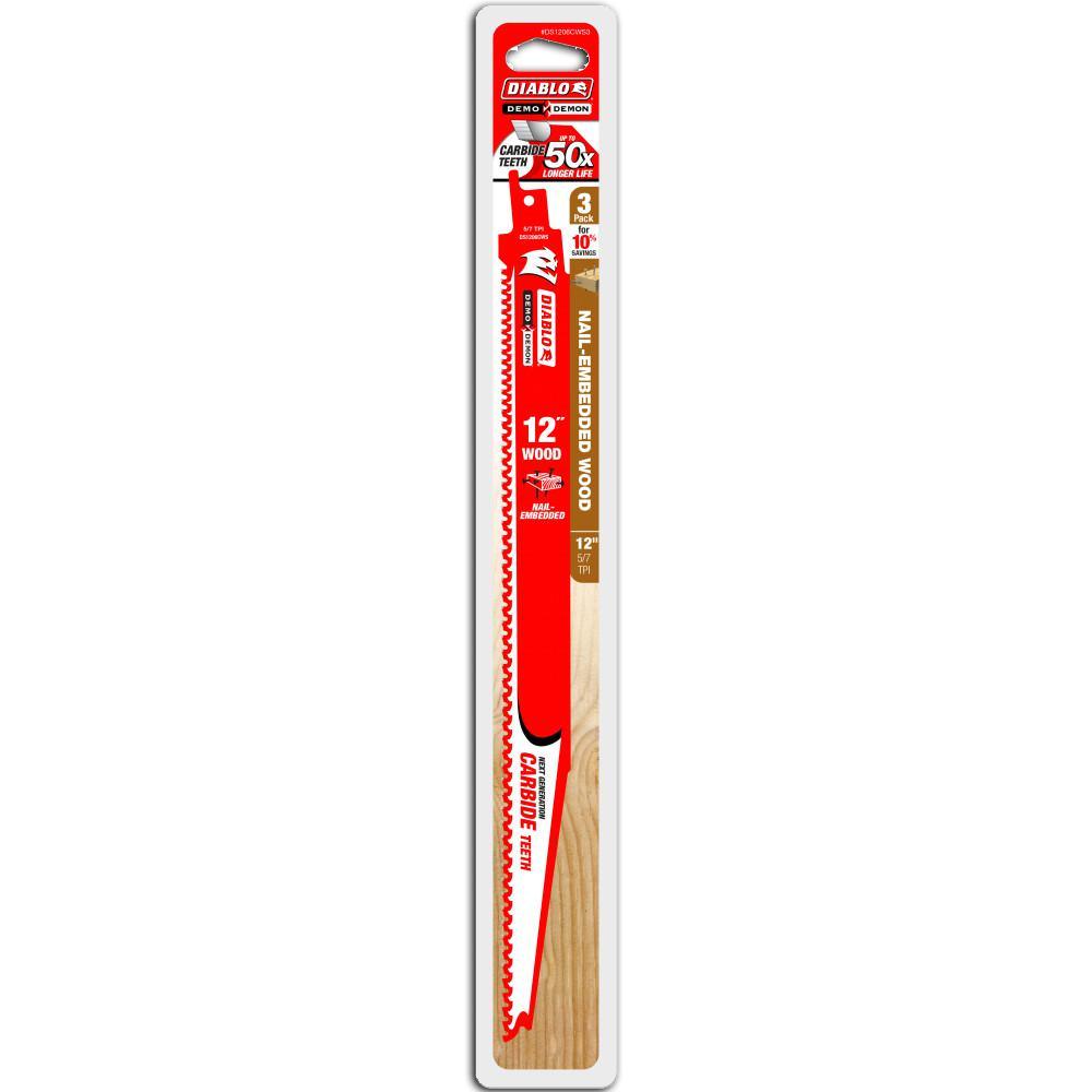 12 in. 6/9 TPI Demo Demon Carbide Tipped Reciprocating Saw Blade for Nail-Embedded Wood (3-Pack)