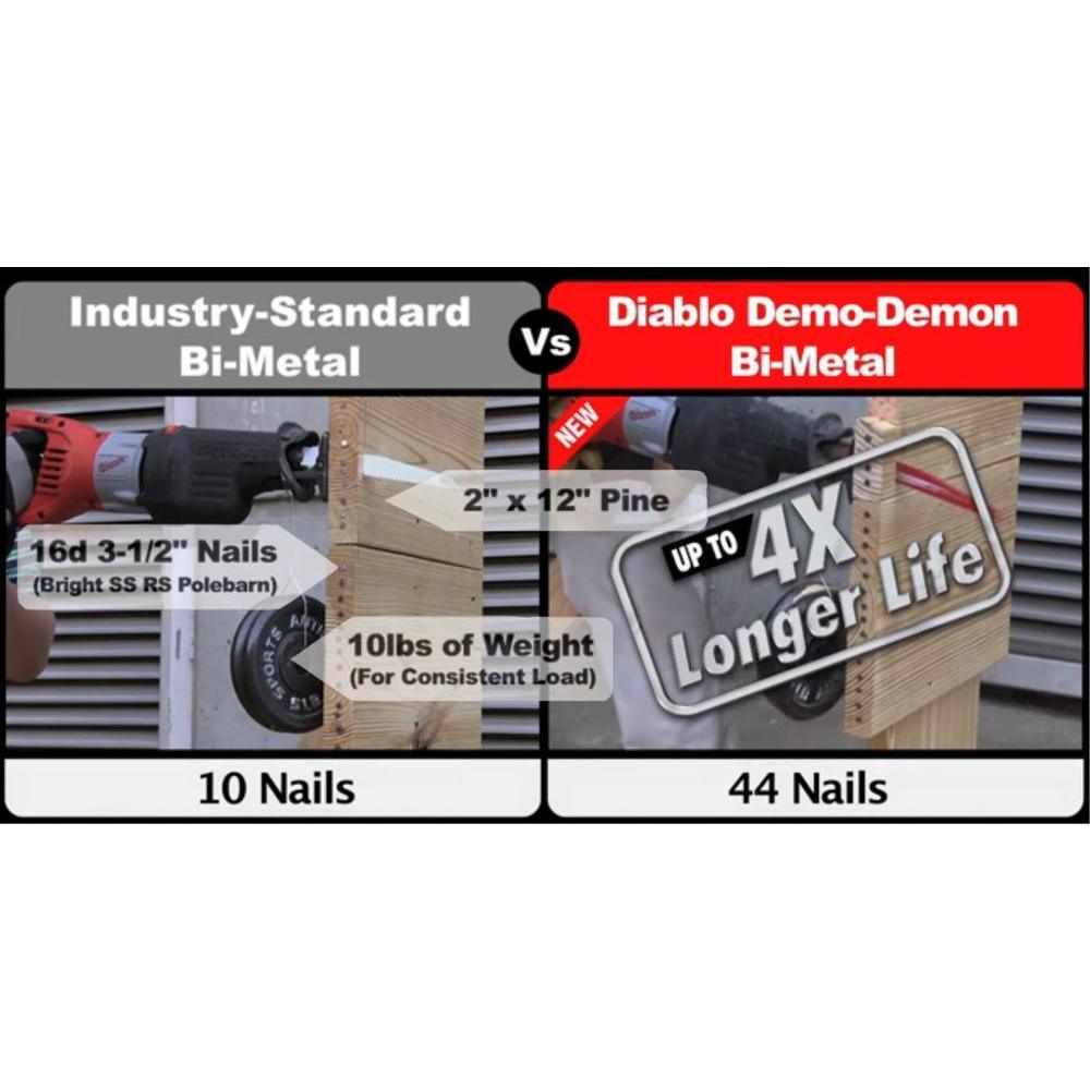 Tackle an assortment of demolition and remodeling tasks with this dependable 14-Piece Reciprocating Saw Blade Set + 2 Free Carbide Recip blades from Diablo. Demo Demon blades blaze through nail-embedded wood with amazing ease to facilitate fast teardowns of walls and framing materials; Steel Demon blades are designed to slice through metal so you can quickly dismantle a variety of pipes, bars and beams up to 1/2 in. thick. General-purpose blades are also included with this comprehensive set, as is a handy carrying case to keep all components organized and protected from job site or workshop perils.