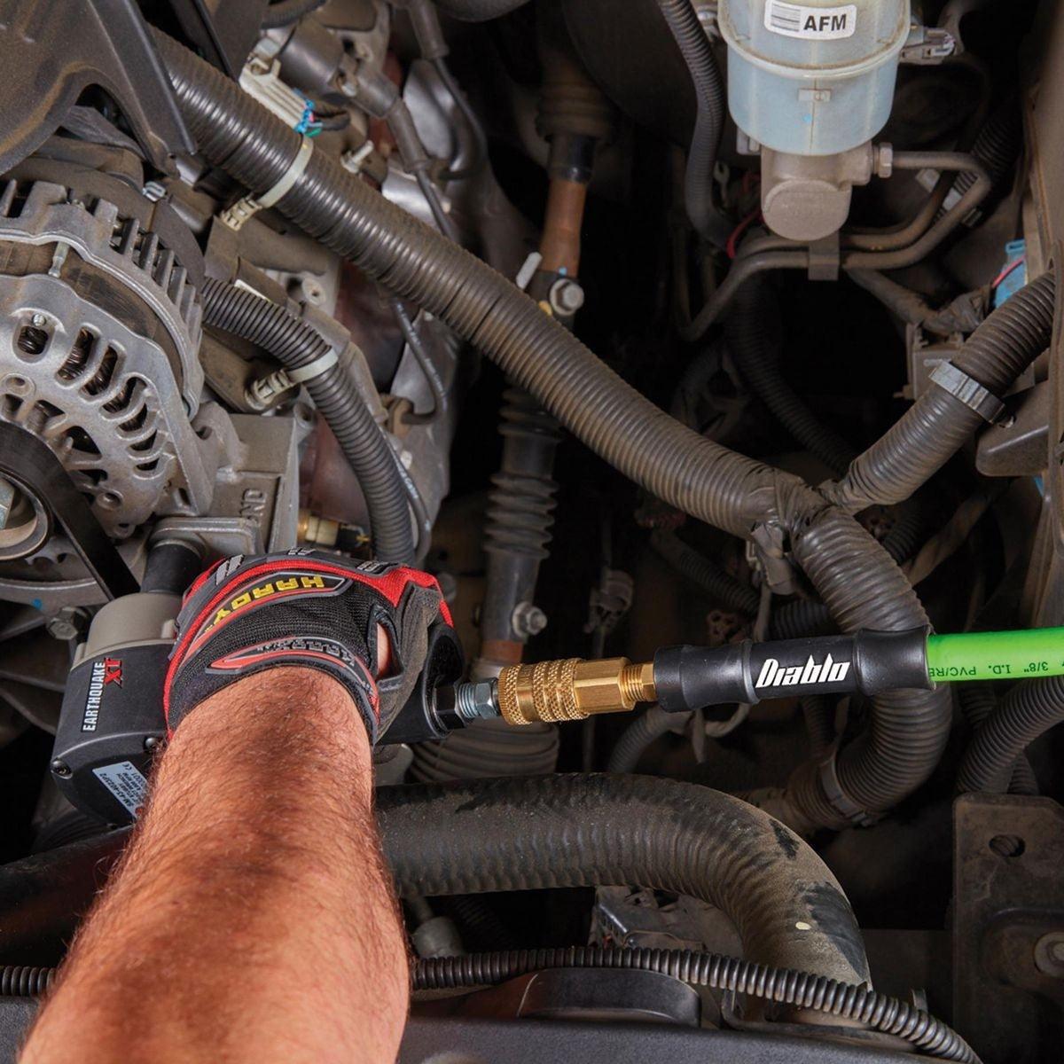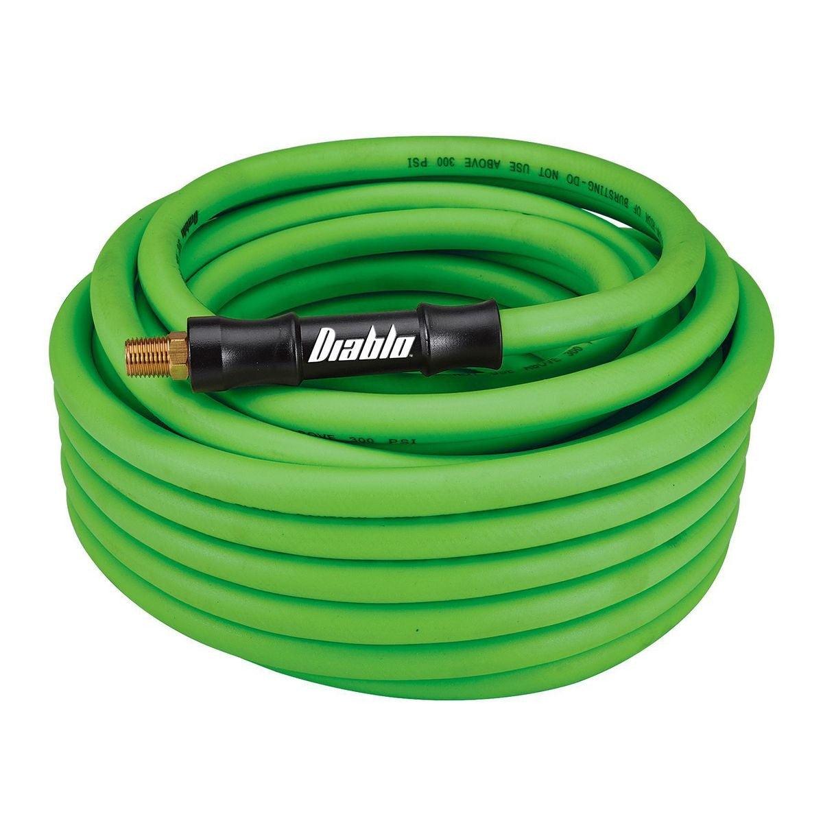 This blended PVC and rubber air hose is lightweight like a standard PVC air hose without sacrificing strength. This tough, flexible hybrid air hose allows you to work in tougher conditions than with other hoses. Features include bend restrictors and brass fittings.