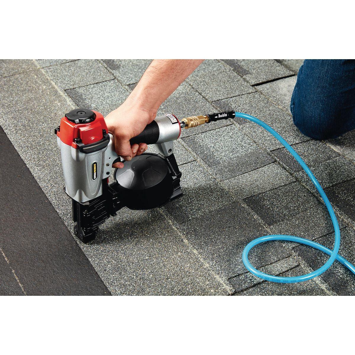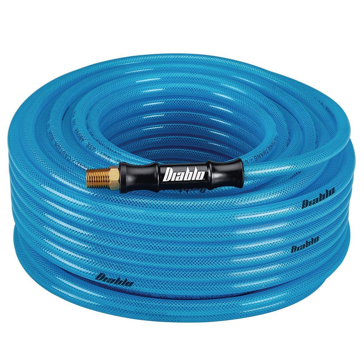 This polyurethane air hose is extremely lightweight, flexible and durable in all work conditions. This non-marring, abrasion resistant hose is 44% lighter than PVC, making it ideal for roofing, flooring and interior work.