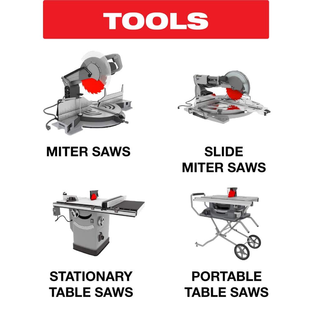 A: This blade is compatible with 10-inch miter saws, slide miter saws, and table saws, making it highly versatile for various projects.