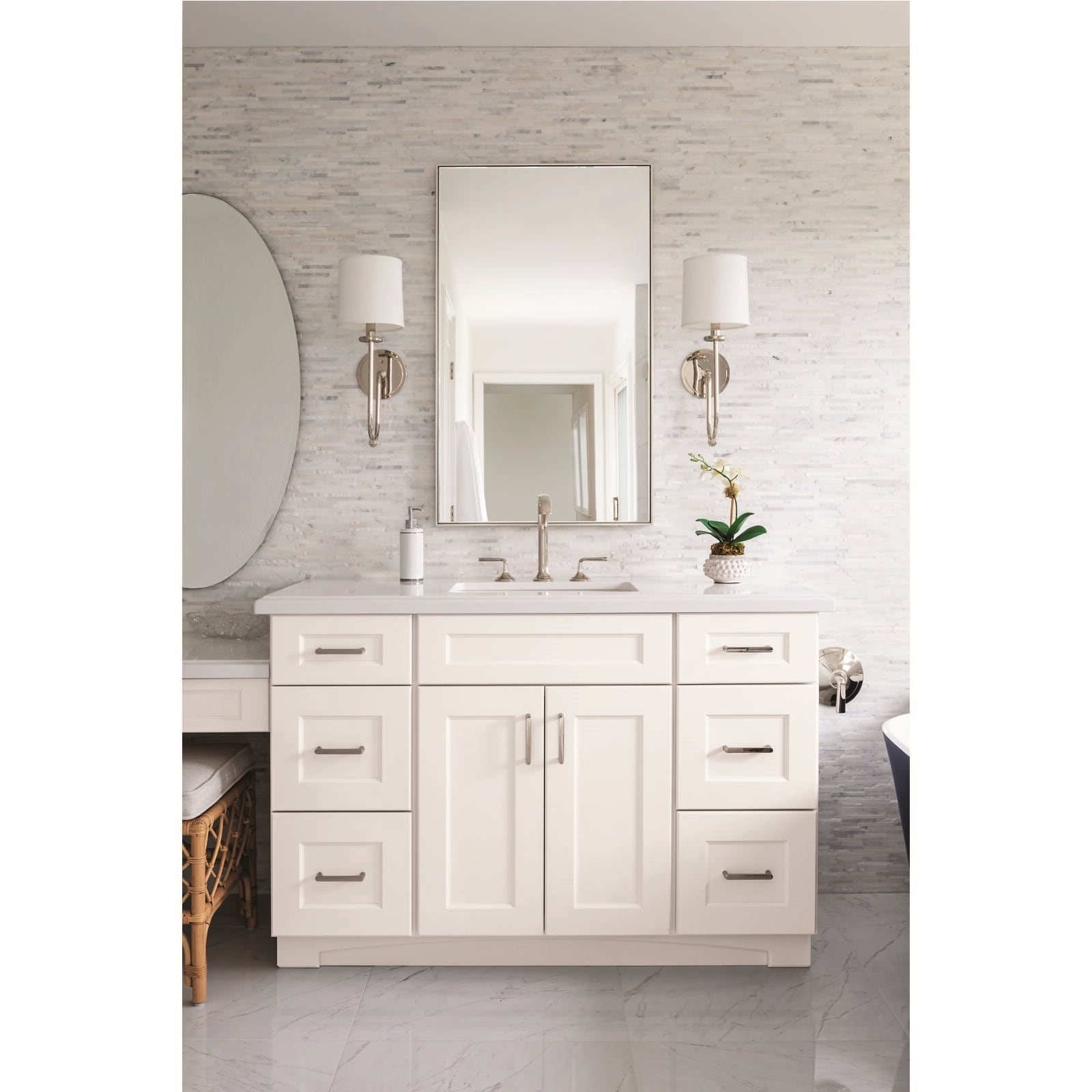 Elevate your space with the Diamond Express Jamestown White 3-Drawer Wall Cabinet. Featuring an industry-leading plywood construction and a soft-close mechanism, this cabinet combines strength with sophisticated design. Its brilliant white finish from HGTV Home by Sherwin-Williams adds an upscale touch, making it ideal for kitchens, bathrooms, or home bars.