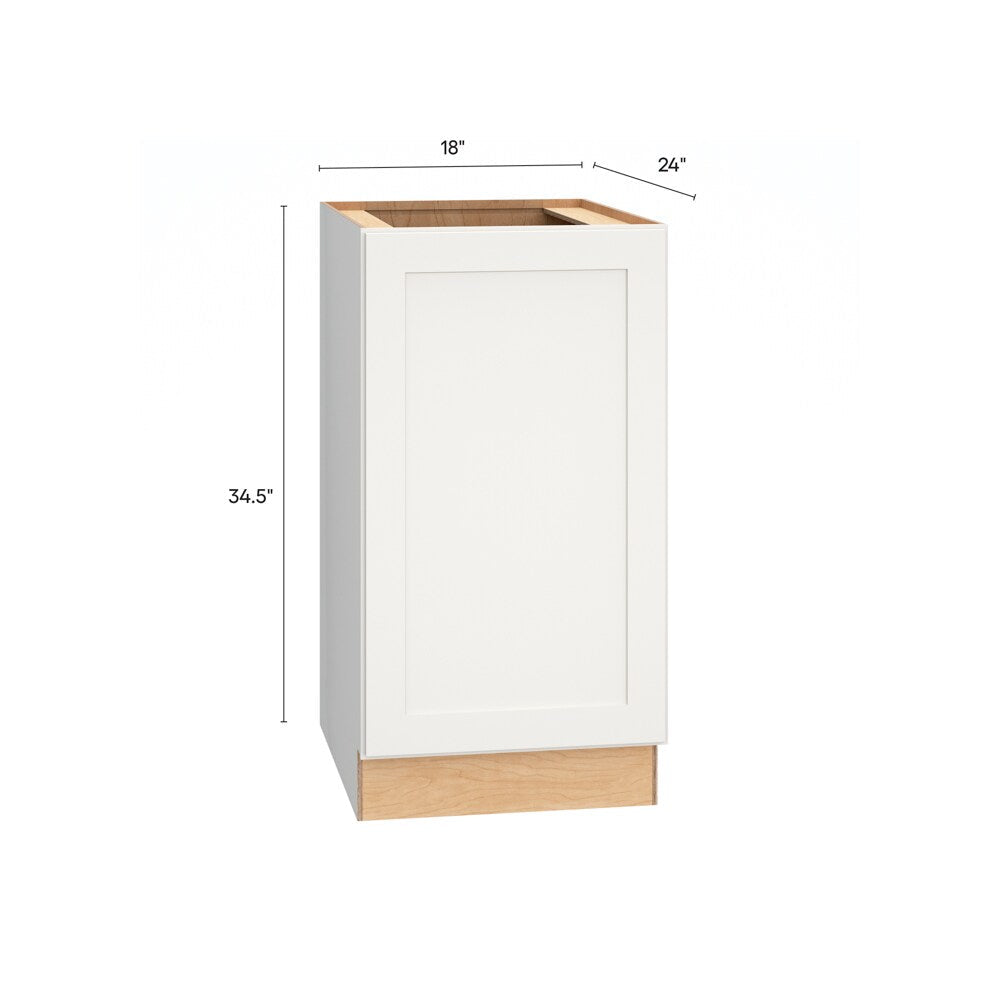 Upgrade any space with the Jamestown 18-inch White Base Cabinet. Crafted with durable all-plywood construction, this fully assembled masterpiece features a timeless recessed panel Shaker door style and solid back design, making it the strongest cabinet in the industry. Perfect for kitchens, bathrooms, or laundry rooms, it's designed to fit any transitional décor.