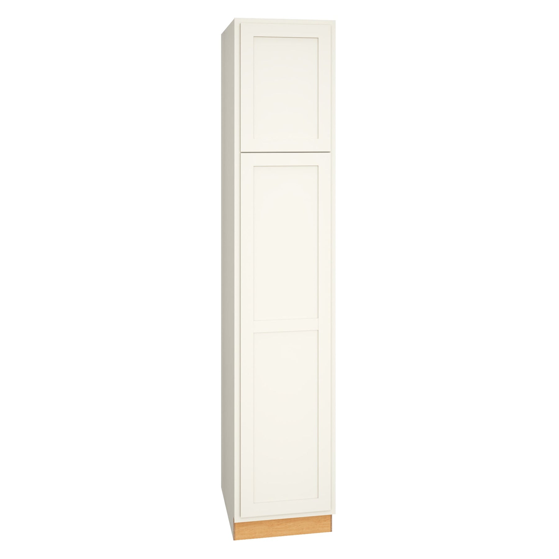 Upgrade your space with the Jamestown 18-in W x 96-in H White Shaker Pantry Cabinet. Featuring a premium plywood construction and a sophisticated partial overlay door style, this cabinet is perfect for kitchens, bathrooms, or laundry rooms. Its all-plywood structure assures durability while providing a crisp, modern look that complements any decor.