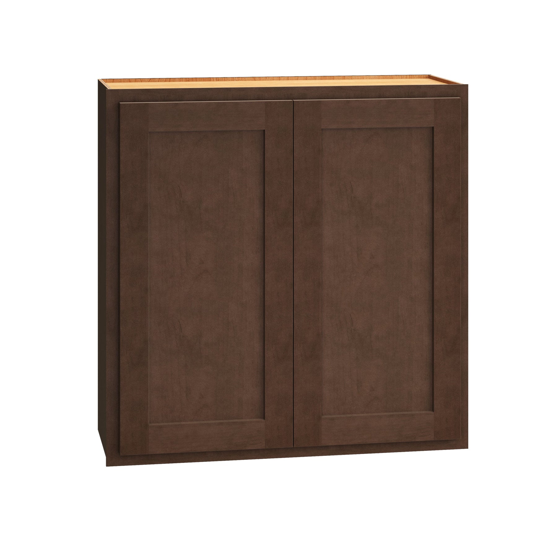 The Diamond Express Jamestown Wall Cabinet features a classic recessed panel shaker door style with a stunning stained Thatch finish, offering elegance to any room. Expertly built with all-plywood construction, this fully assembled cabinet boasts soft-close doors and Diamond TrueCraft solid back construction for superior durability, making it a top choice for high-quality home improvement projects.
