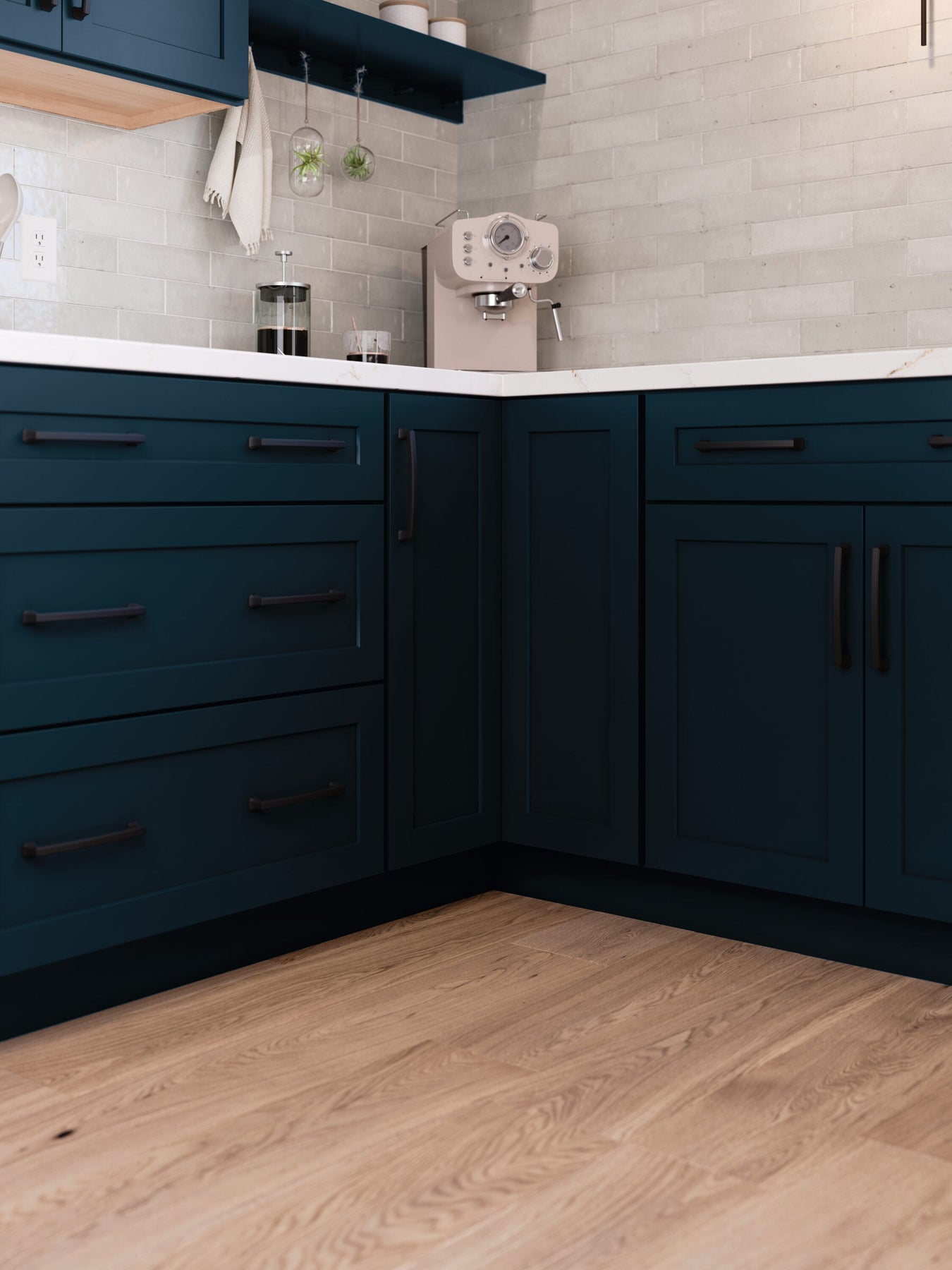 Transform your space with the Jamestown Regatta Blue Base Cabinet—order now to infuse modern luxury into your home with ease!