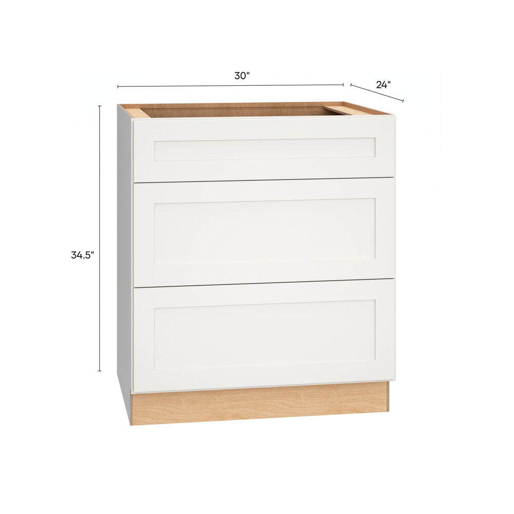 Diamond Express Jamestown 30-in W x 34.5-in H x 24-in D White 3-Drawer Base Fully Assembled Plywood Cabinet (Recessed Panel Shaker Style)