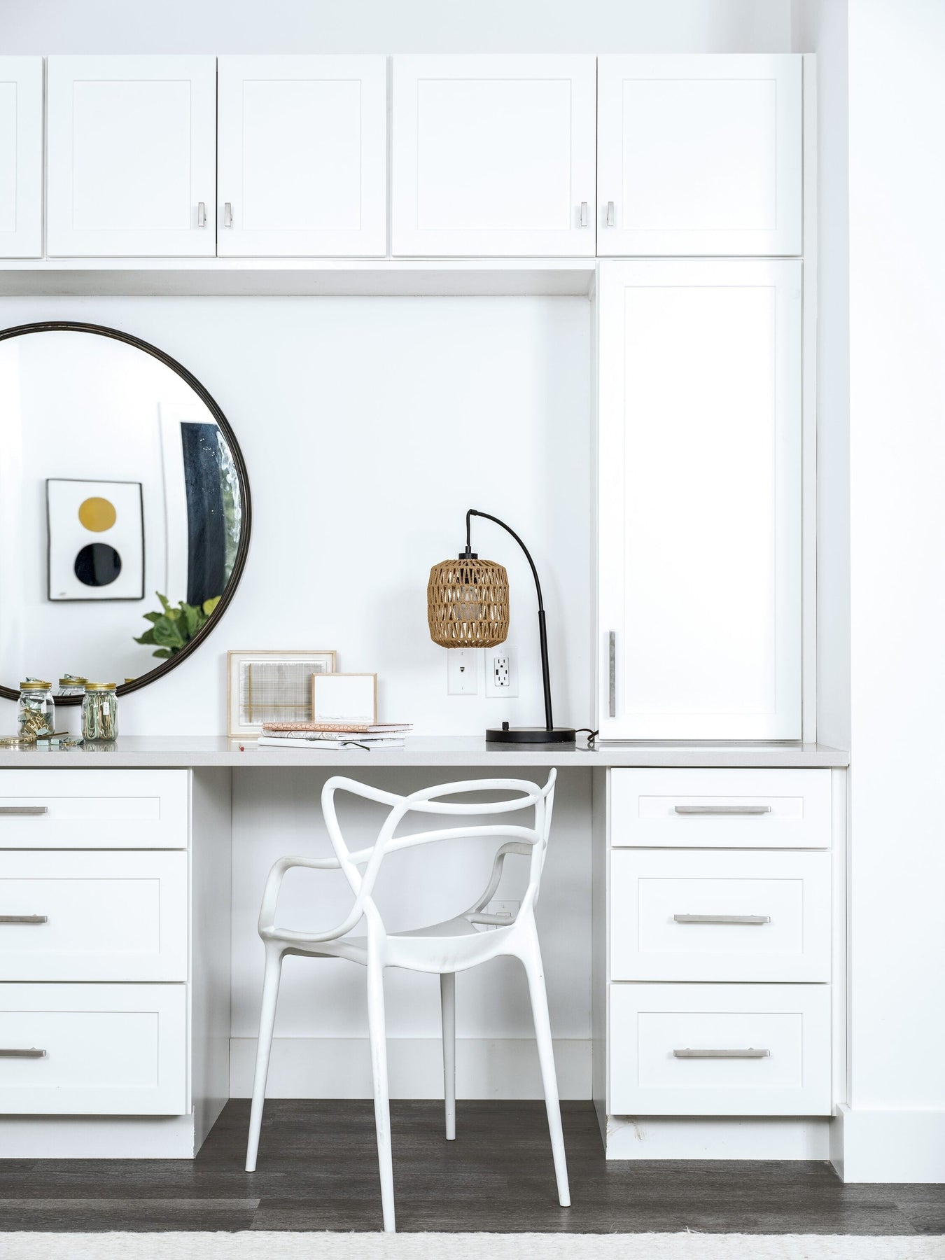 A: The cabinet boasts an upgraded HGTV Home by Sherwin-Williams painted finish, available in white, providing a polished and durable surface.