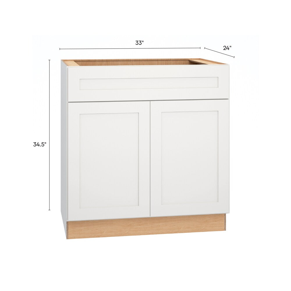 Transform your kitchen with the Jamestown 33" White Sink Base Cabinet, offering timeless Shaker style and unmatched durability. This fully assembled cabinet boasts all-plywood construction and a sleek painted finish for a sophisticated look, complete with soft-close doors for added luxury.