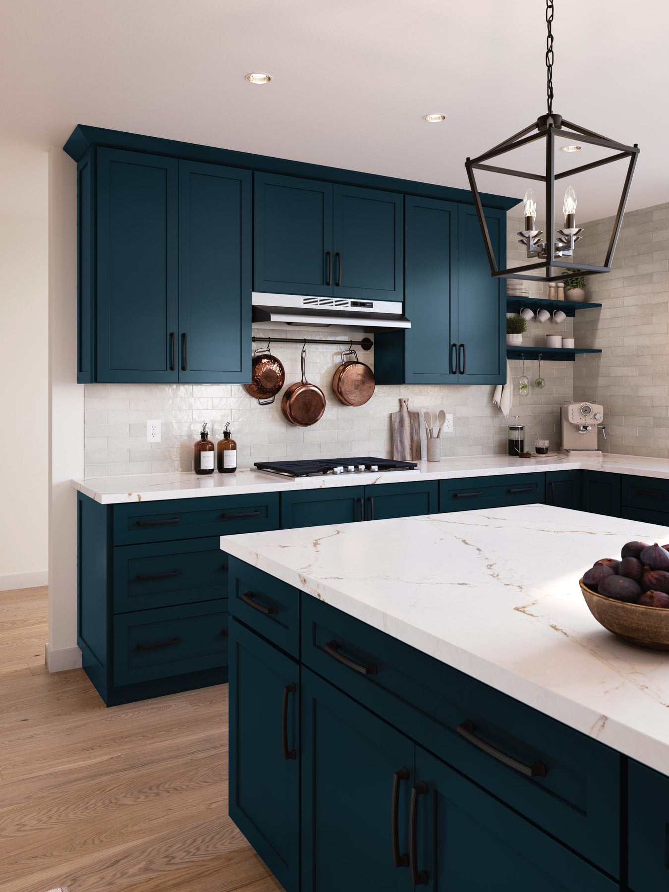 Transform your space with the Jamestown Regatta Blue L-shaped Corner Cabinet, designed for elegance and efficiency. Crafted from durable plywood, it features the timeless Shaker style and a vibrant Sherwin-Williams Regatta Blue finish, perfect for kitchens, bathrooms, or laundry rooms.