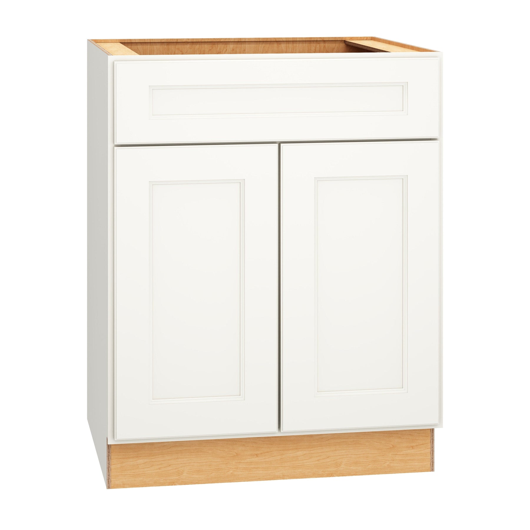 Upgrade your kitchen or workspace with the Macaulay 27-in base cabinet from Diamond Express, featuring robust plywood construction and a sophisticated recessed panel design. This fully assembled cabinet offers soft-close doors and an HGTV Home by Sherwin-Williams painted finish, adding a touch of elegance and functionality to any room.