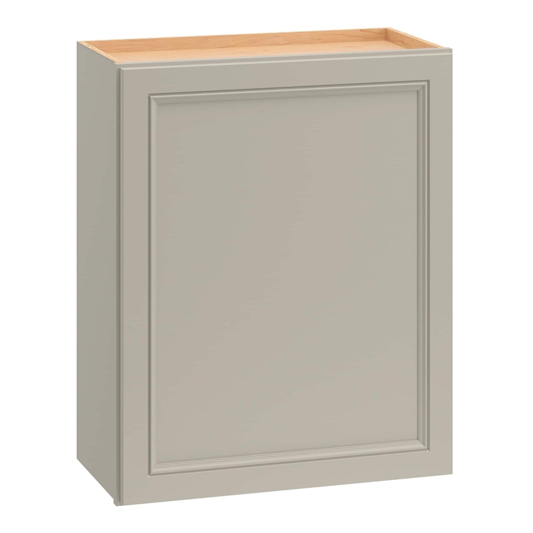 Fully assembled Wintucket wall cabinet delivers a modern, seamless look with a durable TrueColor laminate Cloud Gray finish. Built with solid back and I-beam braces, adjustable shelves, and reversible full-overlay door for easy installation and long-lasting use in kitchens or laundry rooms.