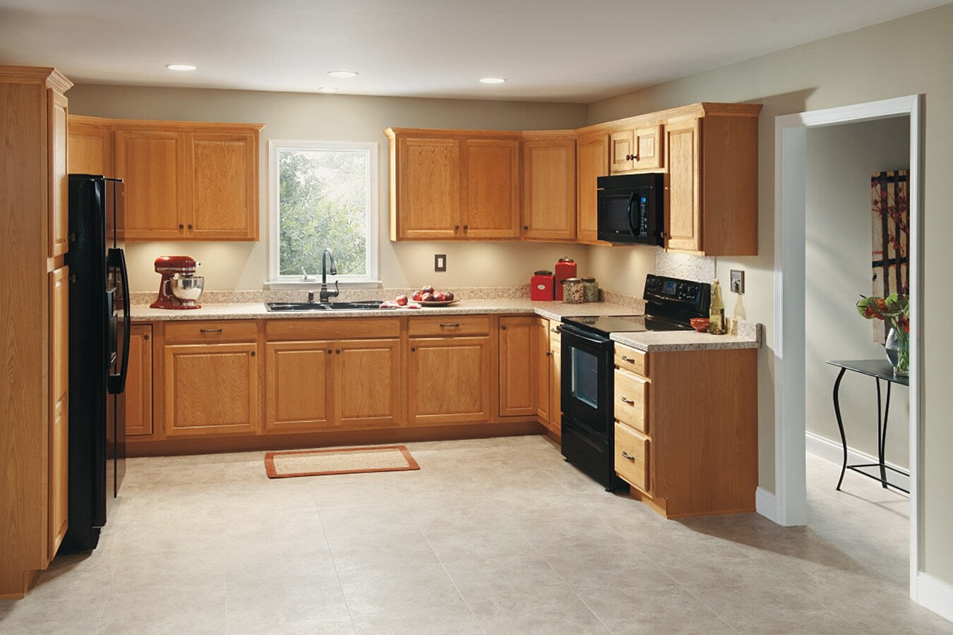 • Timeless Style: Raised panel doors and slab drawer front in a warm Wheat finish suit traditional kitchens.