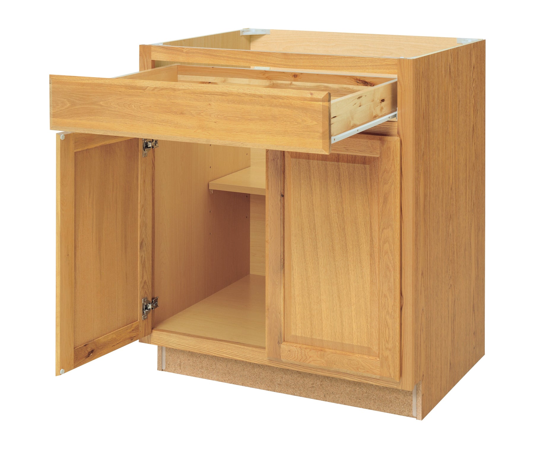 A: Yes—fronts are included; this is a fully assembled stock base cabinet.