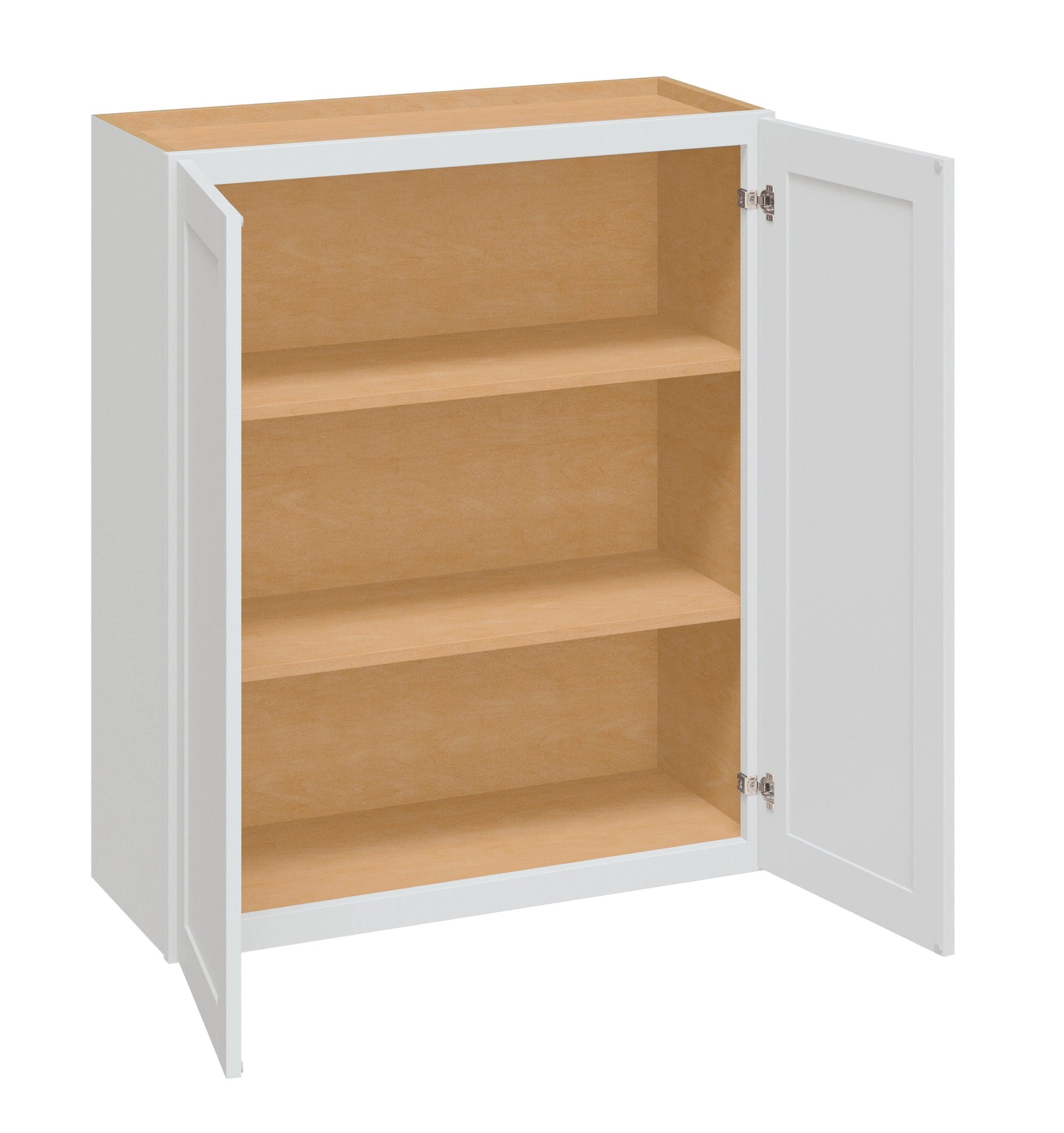 The Arcadia White Wall Cabinet features a refined Shaker design with a durable TrueColor™ laminate finish that stands up to daily use. This pre-assembled cabinet offers seamless integration into any space, providing both style and functionality with easy installation and versatile storage options.