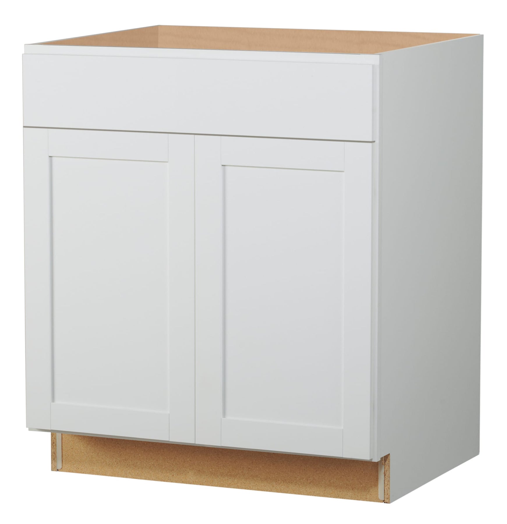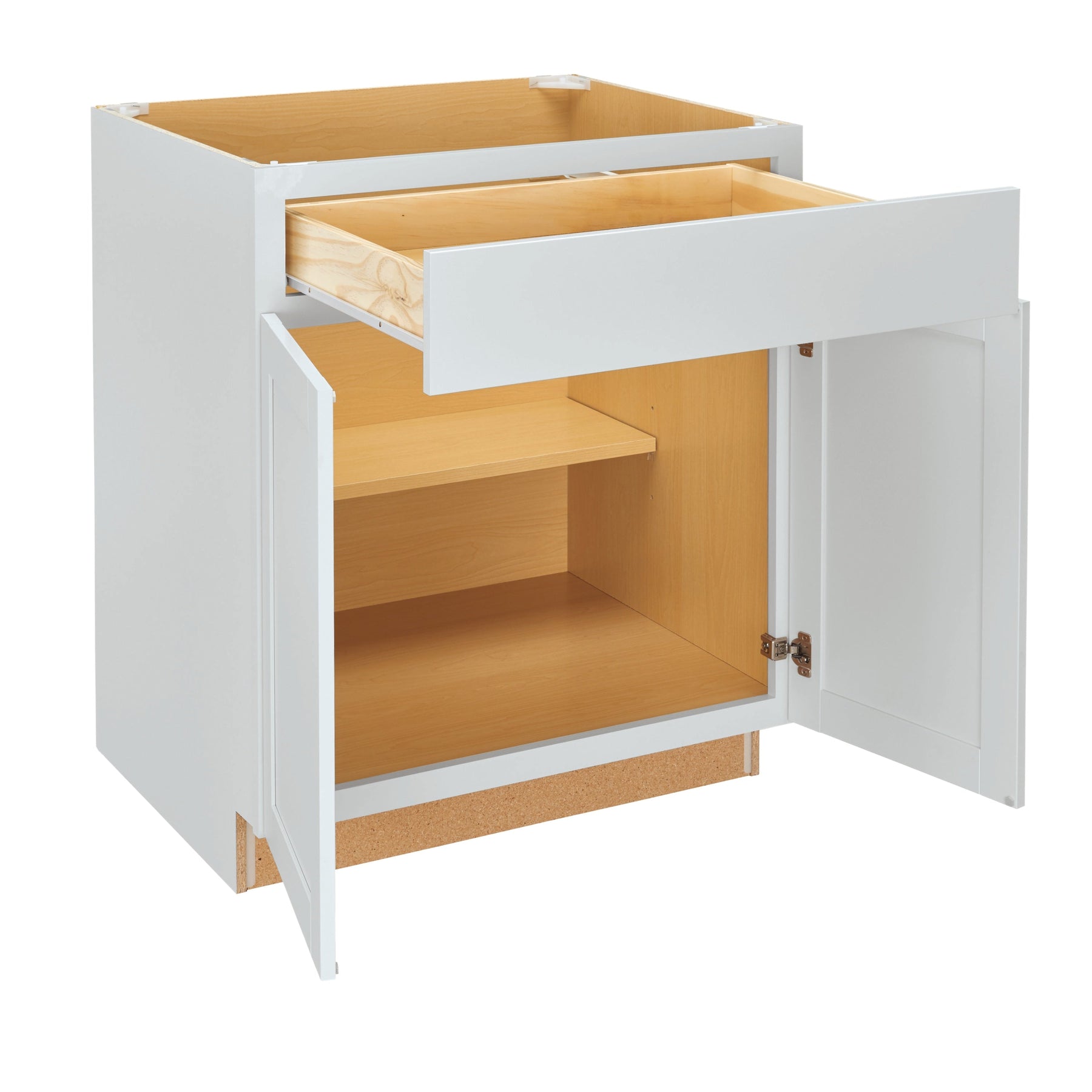 The Diamond NOW Arcadia white base cabinet offers a sleek, modern look for any kitchen space. With its true white TrueColor™ laminate finish, this 1-drawer, 2-door unit provides a clean, durable solution that's ready to install. Its recessed panel Shaker style ensures timeless appeal, making it a high-style choice for both pros and DIY users alike.