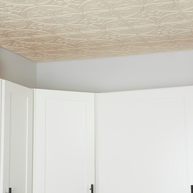 Elevate your space with our 4-ft x 2-ft Creme Polystyrene Ceiling Planks, designed to mimic the classic elegance of tin tiles without the hefty price tag. Perfect for ceilings, walls, or backsplashes, these planks are an excellent choice for a quick, transformative update with easy installation.