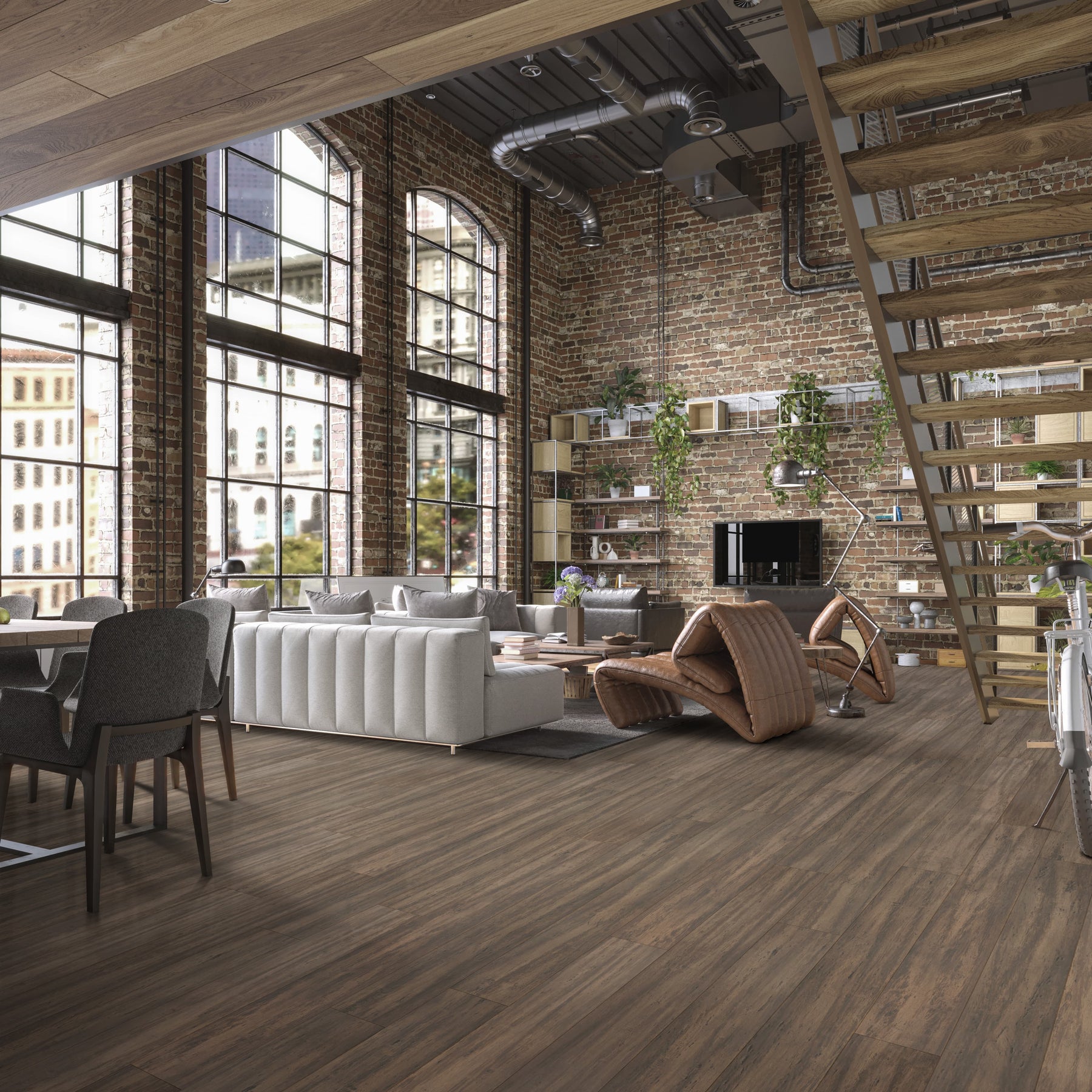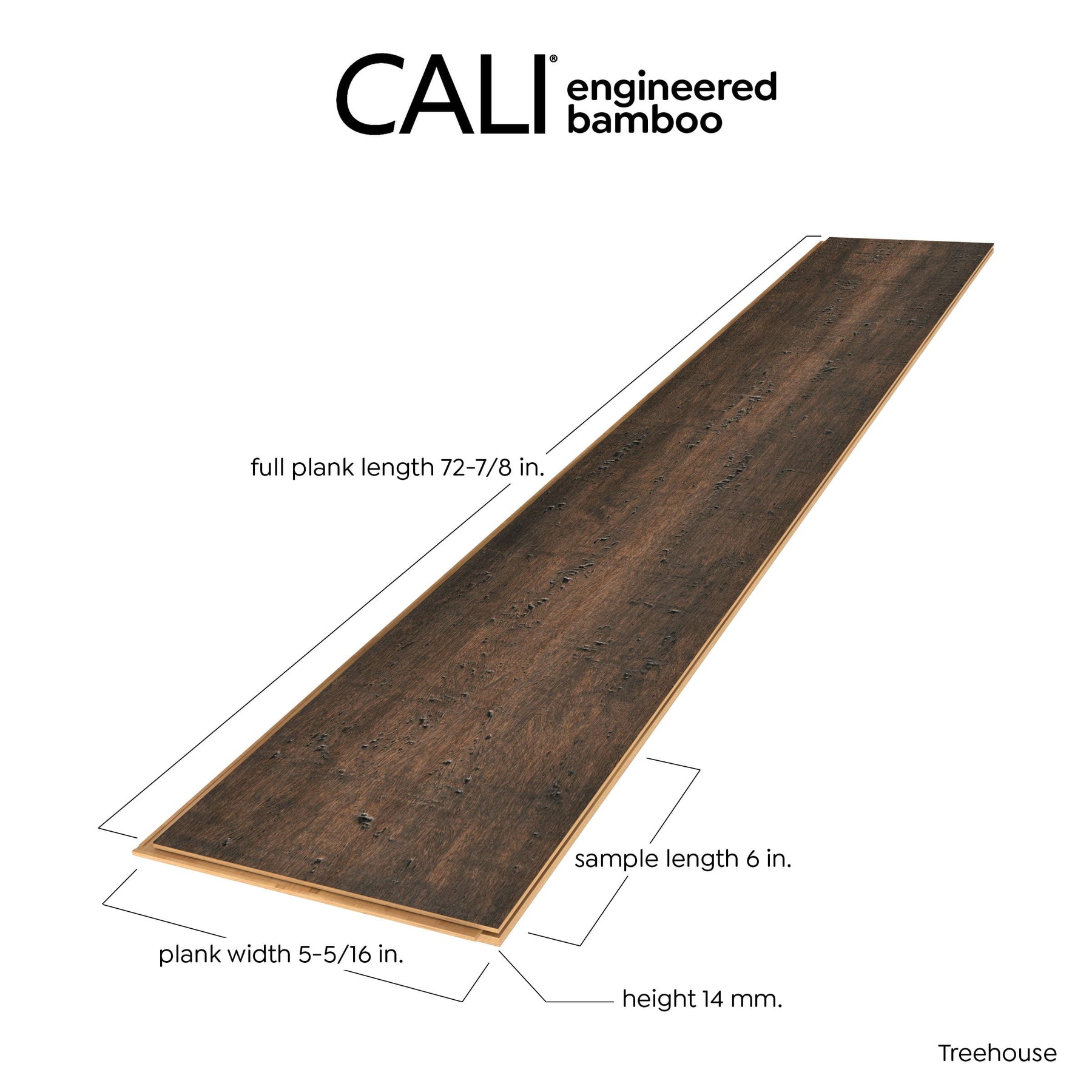 Engineered bamboo planks featuring Cali’s Fossilized technology deliver exceptional durability with a rich Treehouse tone and distressed texture. Click-lock construction installs floating or glued, and each carton covers 21.5 sq ft for efficient room updates.