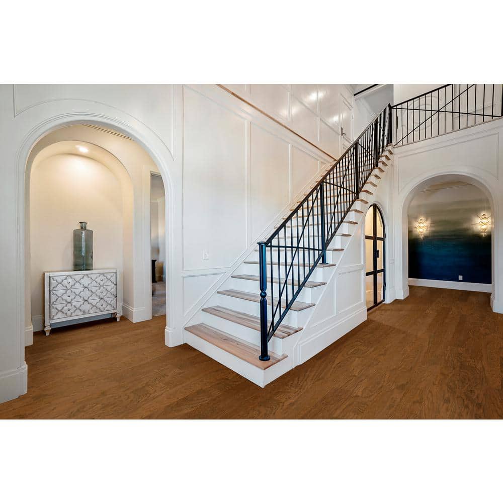 Enliven your interiors with the ASPEN Brooke Hickory Engineered Hardwood, a touchstone of elegance that transforms any room into a masterpiece. The subtle distressed finish whispers stories of timeless sophistication, while its authentic hickory warmth harmonizes with both modern and classic decor. Pair this luxurious flooring with plush rugs and sleek furniture to create an alluring, serene living space. Truly, this flooring is a cornerstone of luxurious living, blending style with enduring quality.
