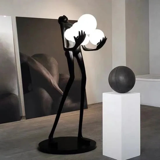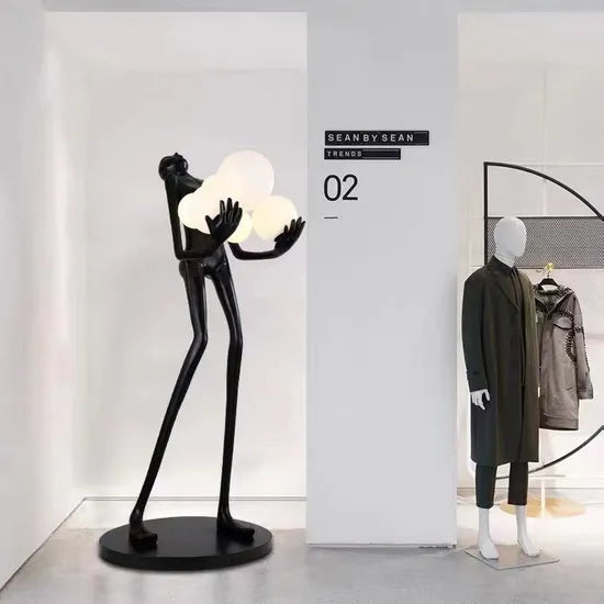 The Glass Ball Model Floor Lamp combines modern elegance with functional lighting to transform any space. Featuring a sleek iron frame in a chic black finish, it adds a touch of sophistication to living rooms, bedrooms, or commercial spaces alike. Designed with versatility and style in mind, this floor lamp showcases a distinctive glass ball that creates ambient lighting ideal for any setting.