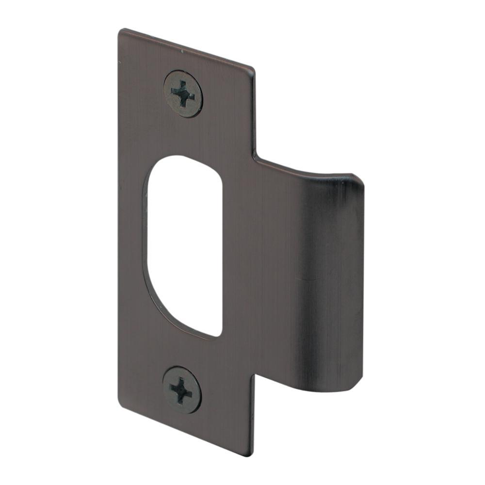 This T-strike is constructed from solid brass and comes finished in bronze. It features an easy to install design with 2-1/8 in. hole centers. This style strike is used on wood or metal jambs with most grade 2 locksets.
